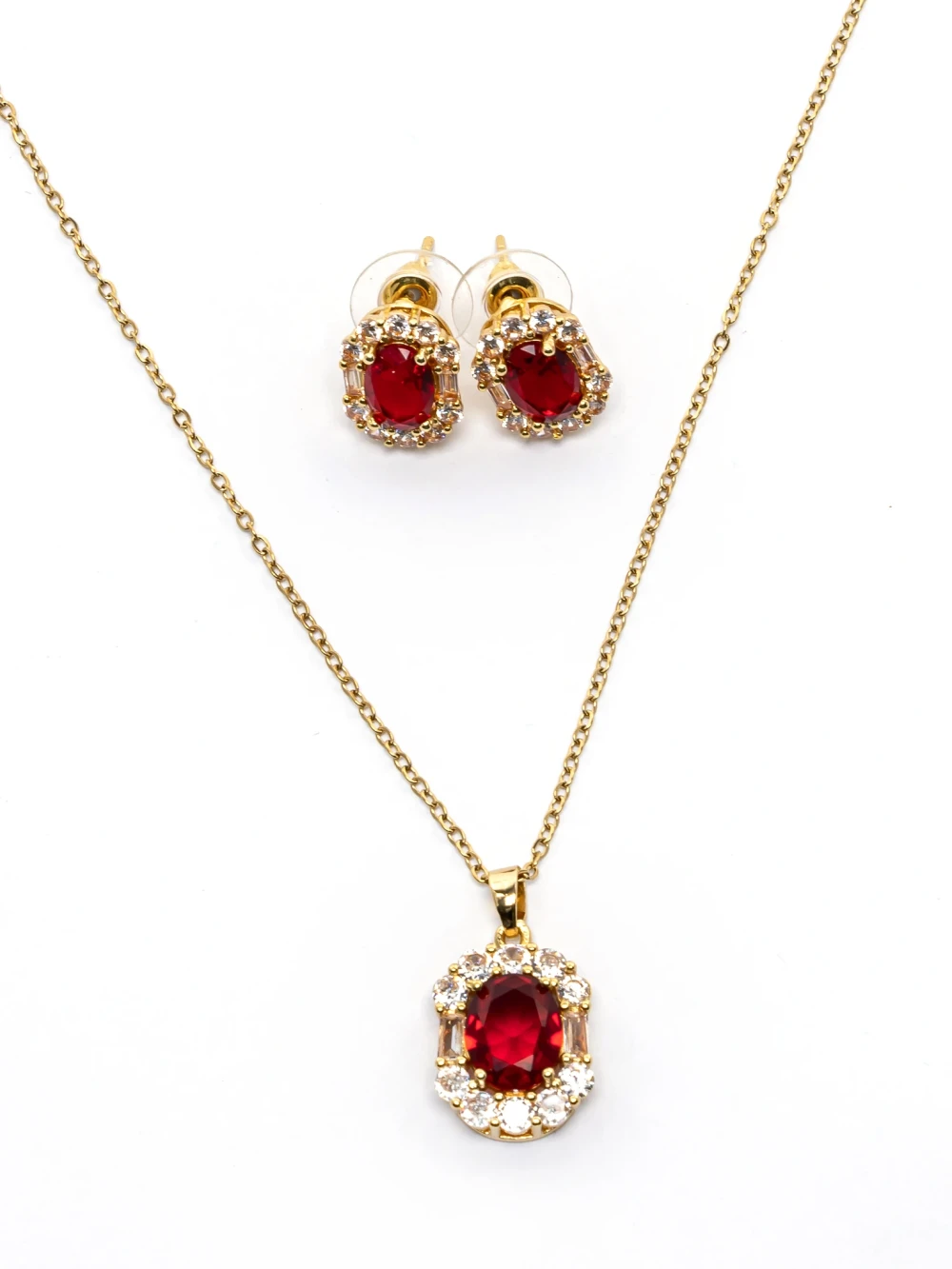 Komplet naszyjnik + kolczyki T1021300 Złoty-Czerwony | Mei