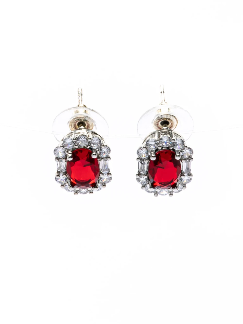 Komplet naszyjnik + kolczyki T1021300 Srebrny-Czerwony | Mei