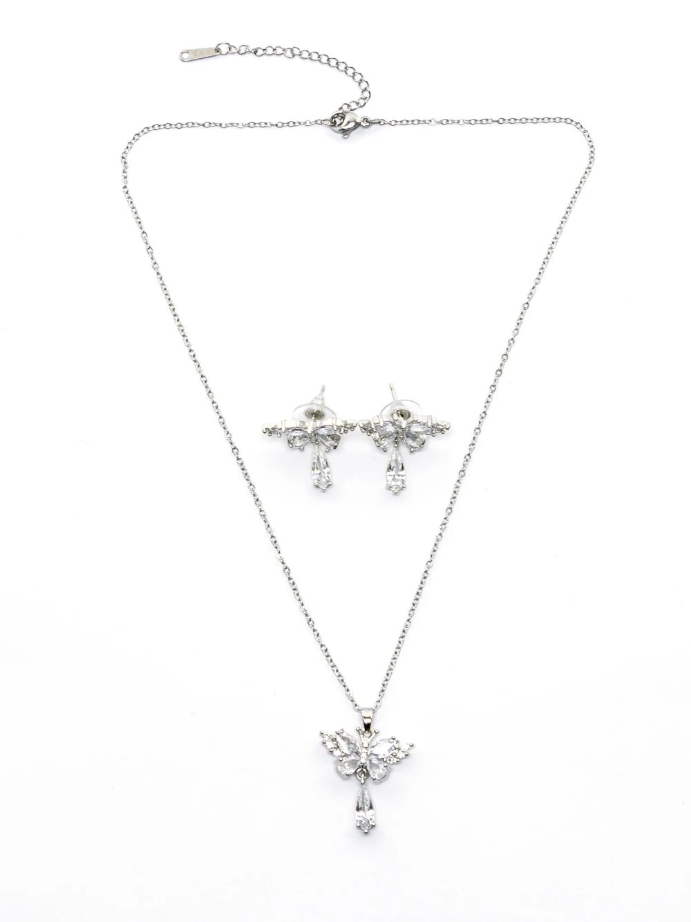 Komplet naszyjnik + kolczyki CLR002 Srebrny | Mei