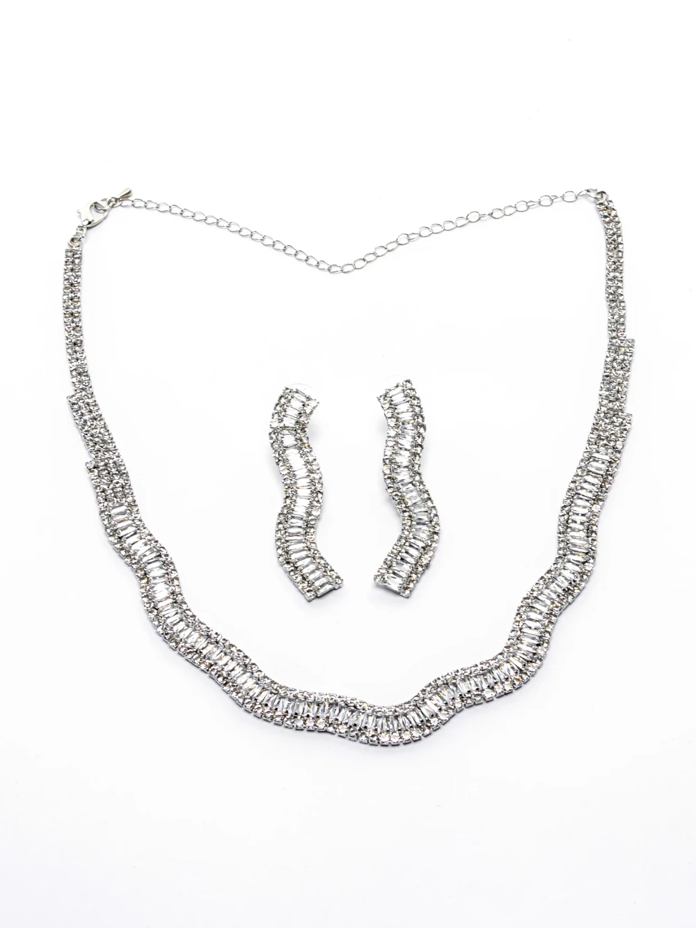 Komplet naszyjnik + kolczyki CLR009 Srebrny | Mei