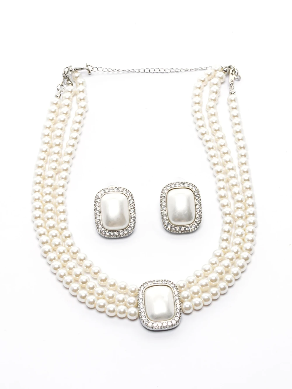 Komplet naszyjnik + kolczyki CLR010 Srebrny-Biały | Mei