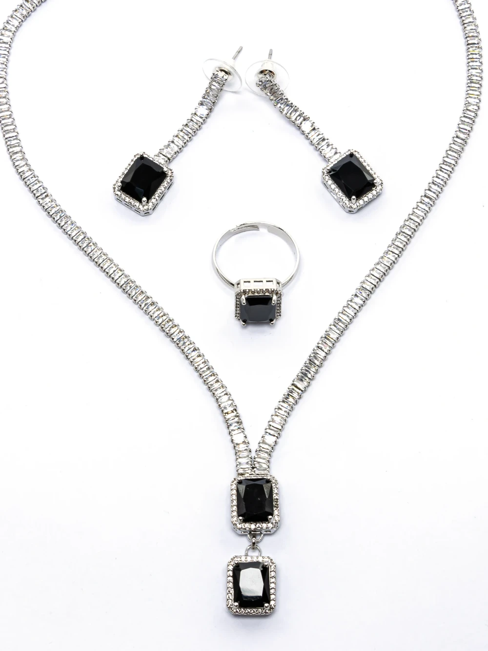 Komplet naszyjnik + kolczyki CLR016 Srebrny-Czarny | Mei
