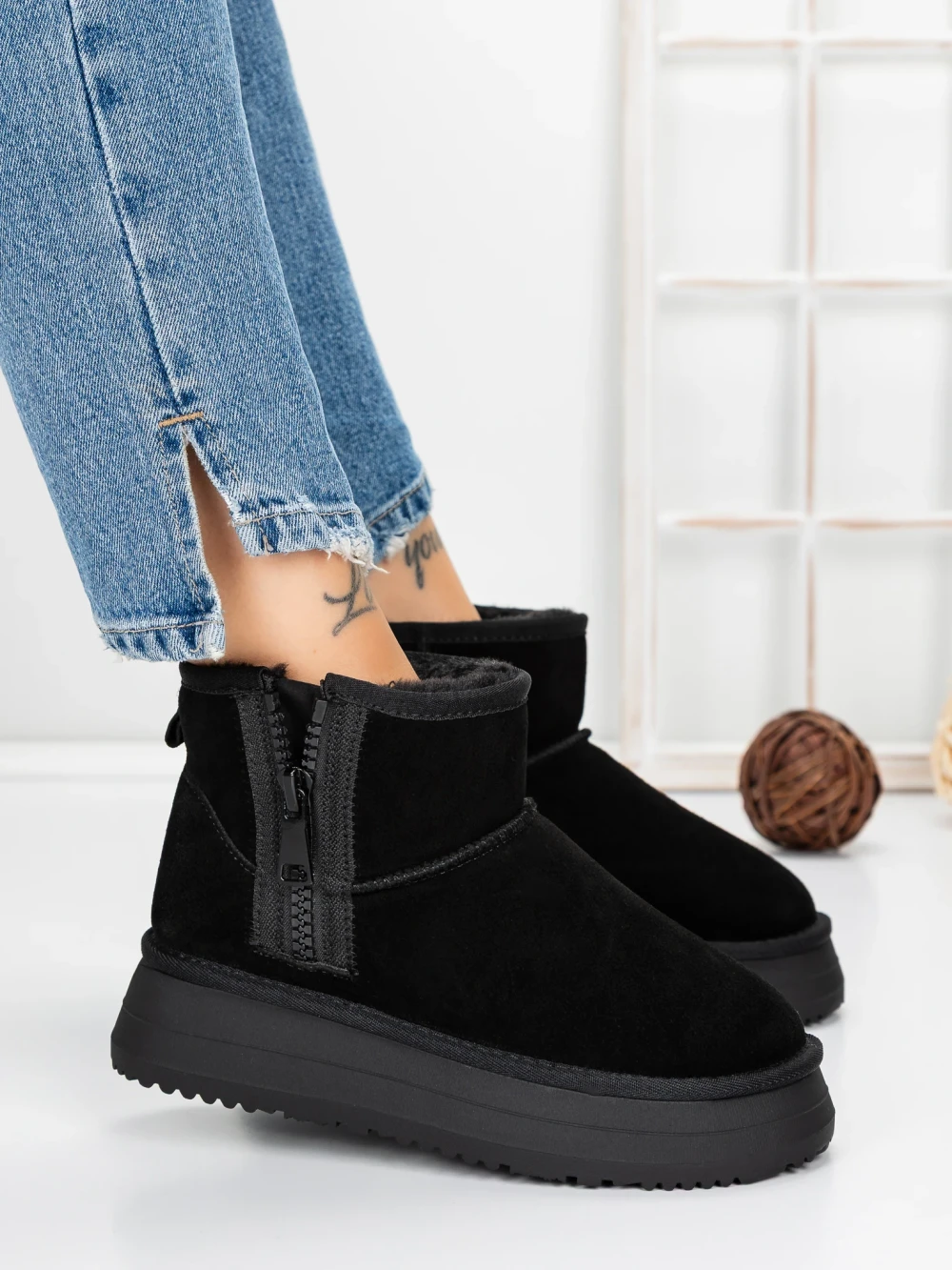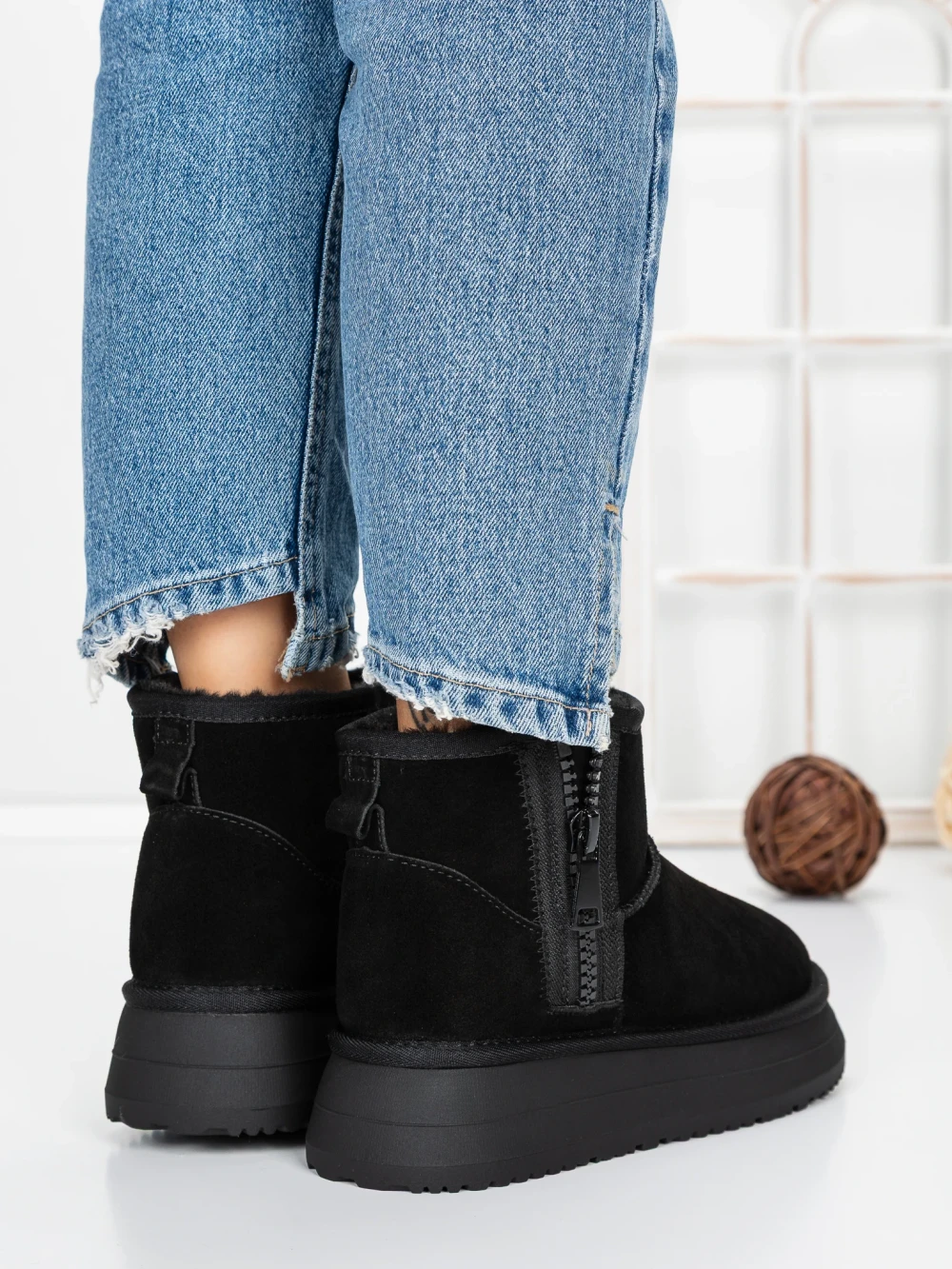 Damskie skórzane botki UG 3AL17 Czarny | Mei