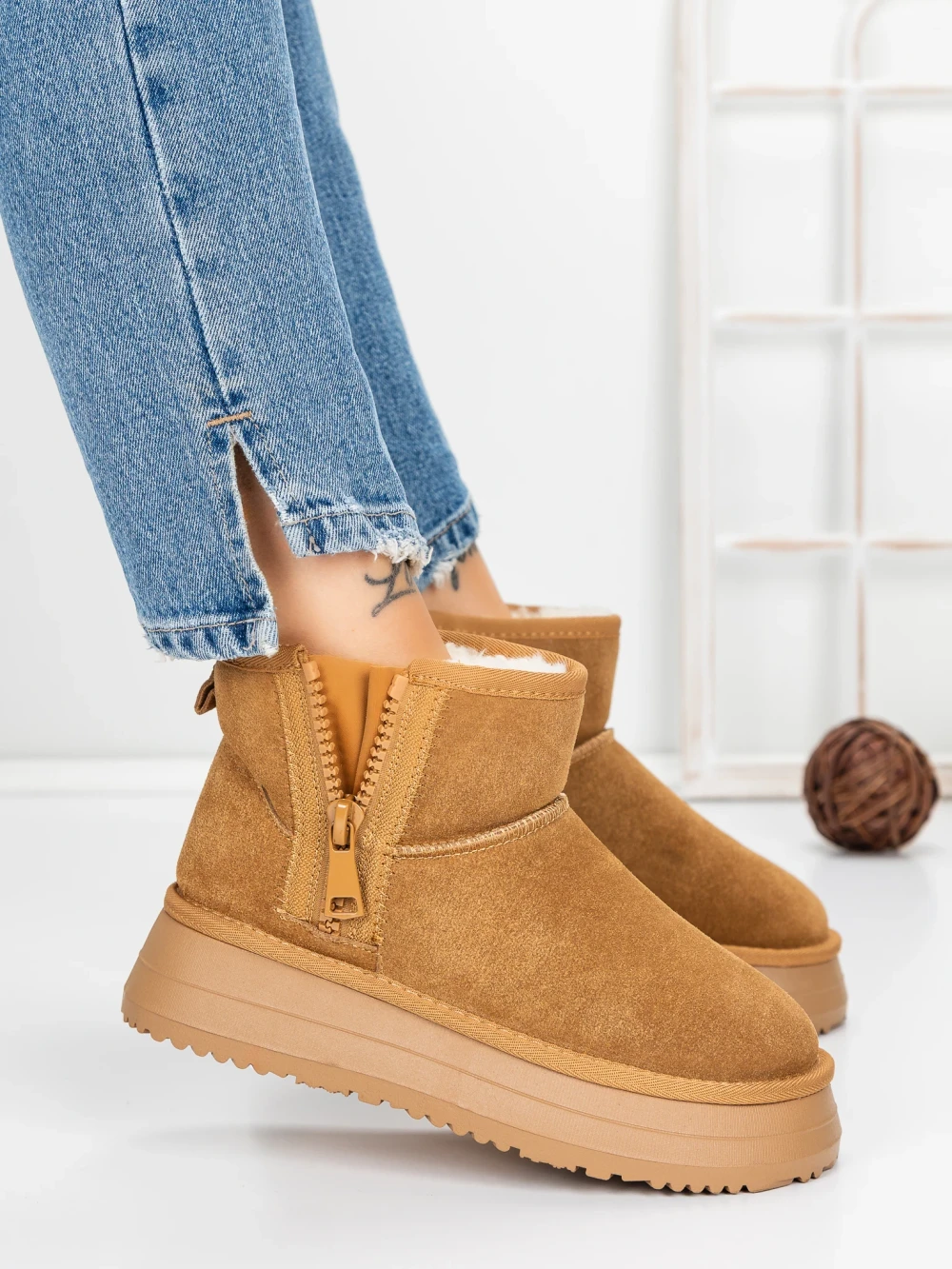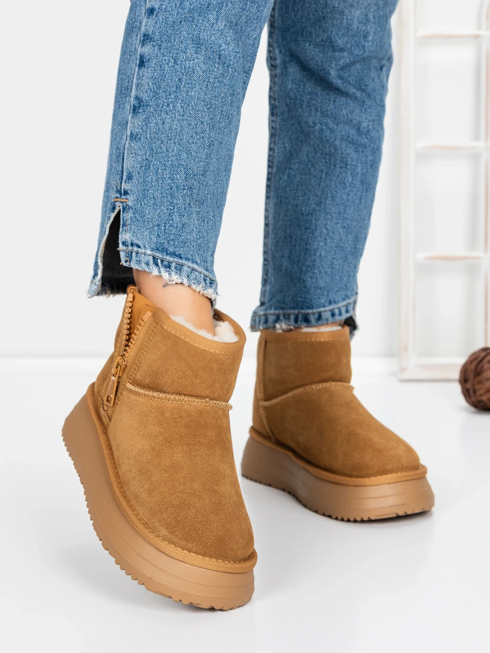 Damskie skórzane botki UG 3AL17 Żółty | Mei