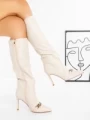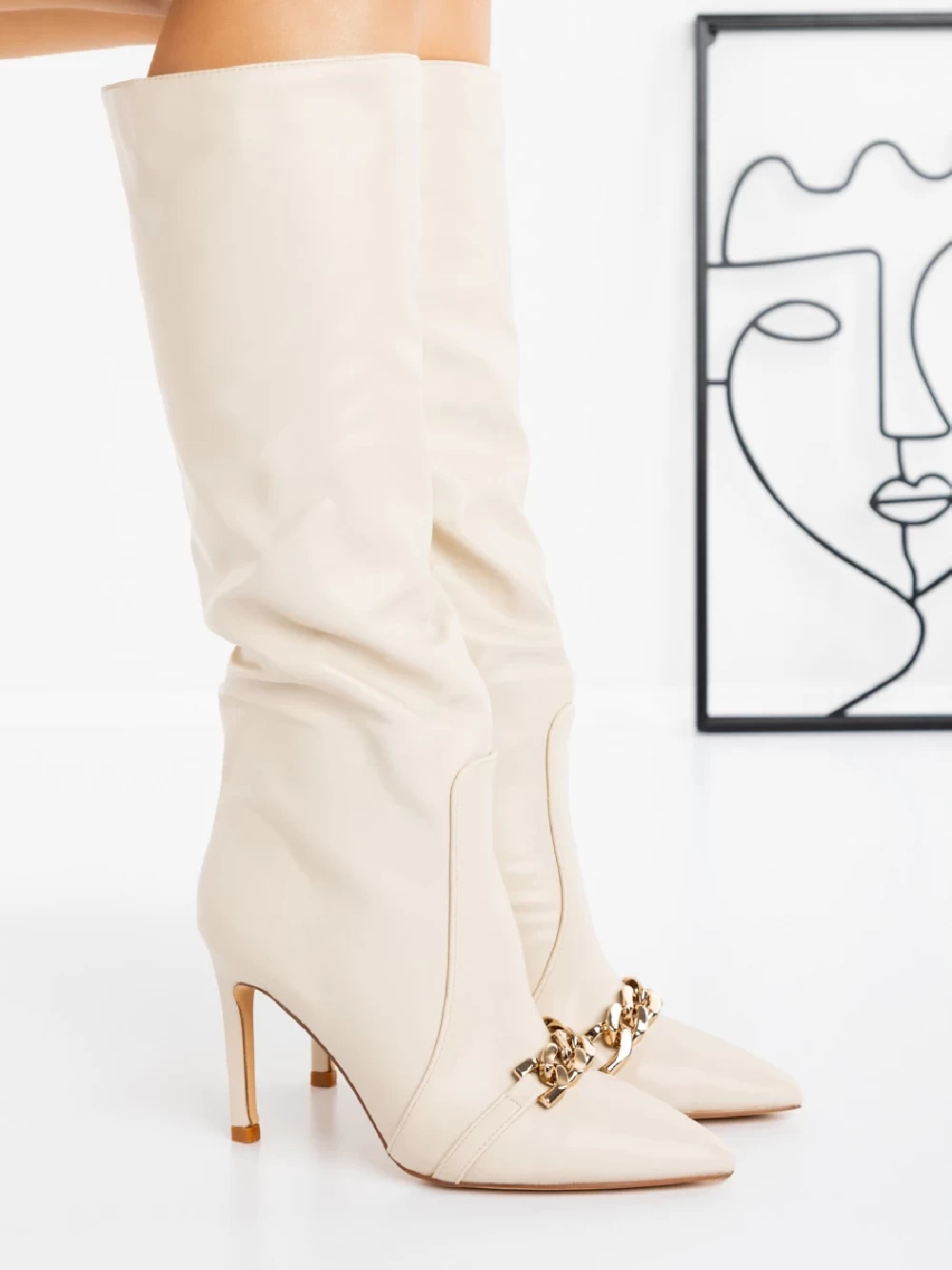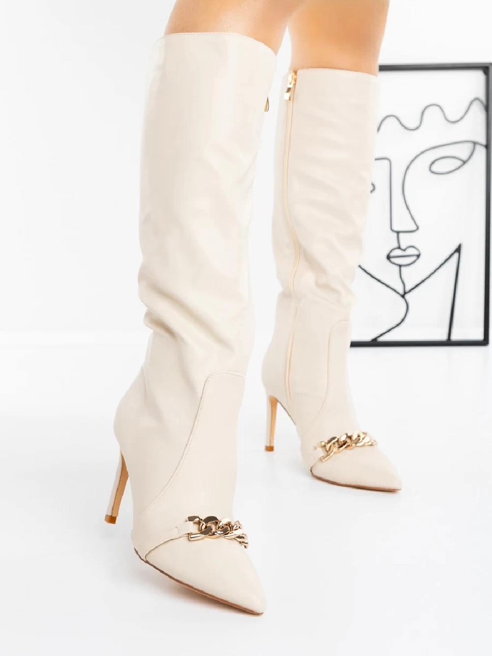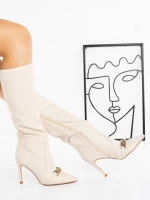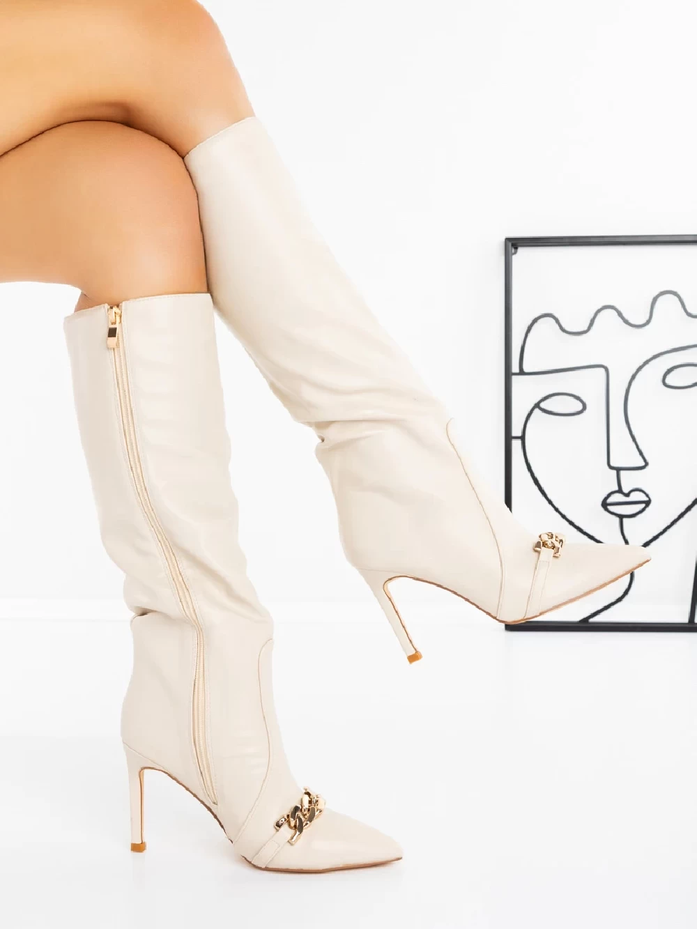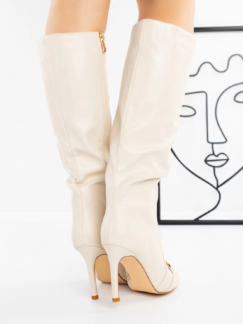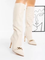 Kozaki na obcasie J6115 Beżowy | Mia Shoes