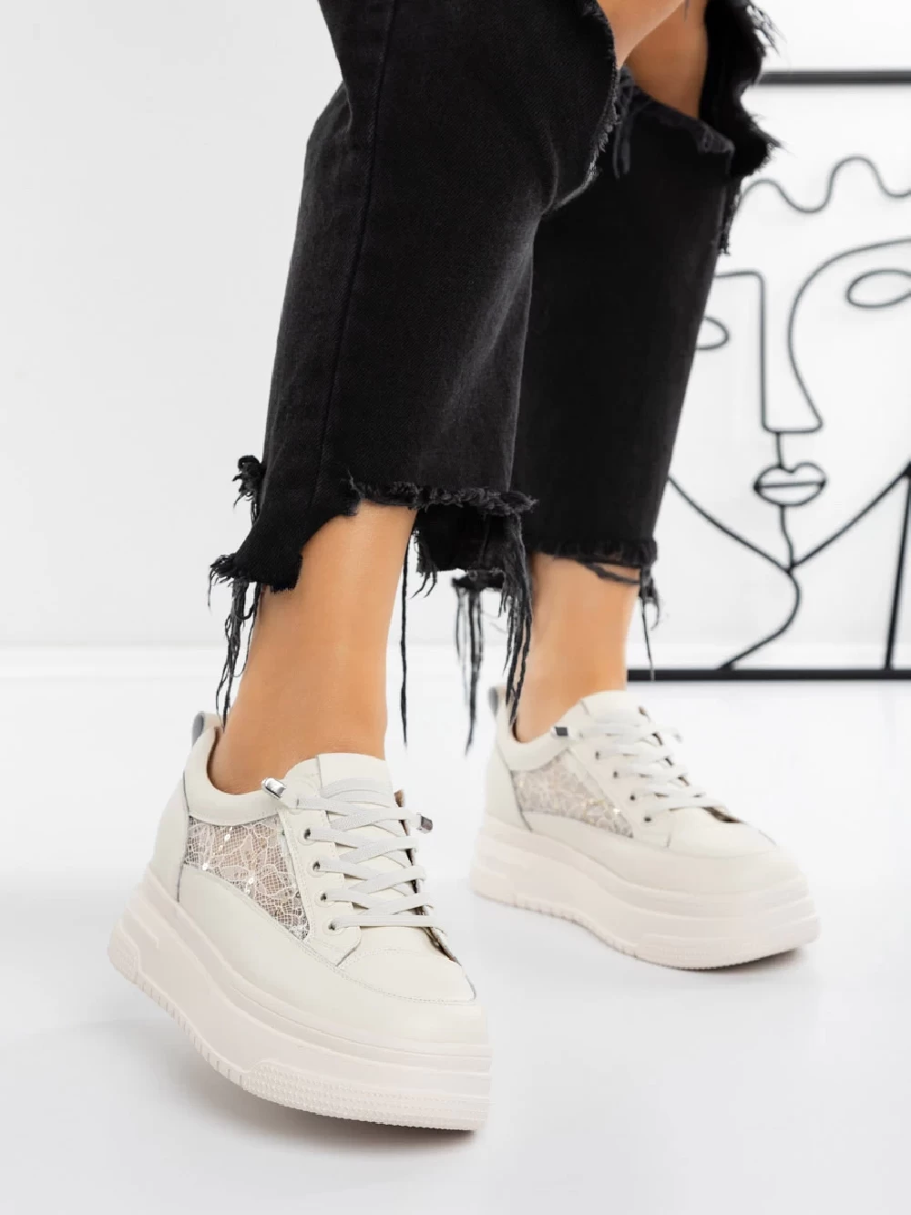 Buty sportowe na platformie 5WZ8 Biały | Mei