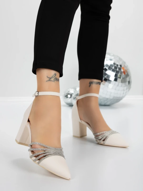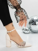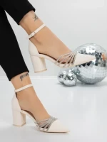 Pantofi cu Toc Gros 5XKK8PD BEIGE | MEI