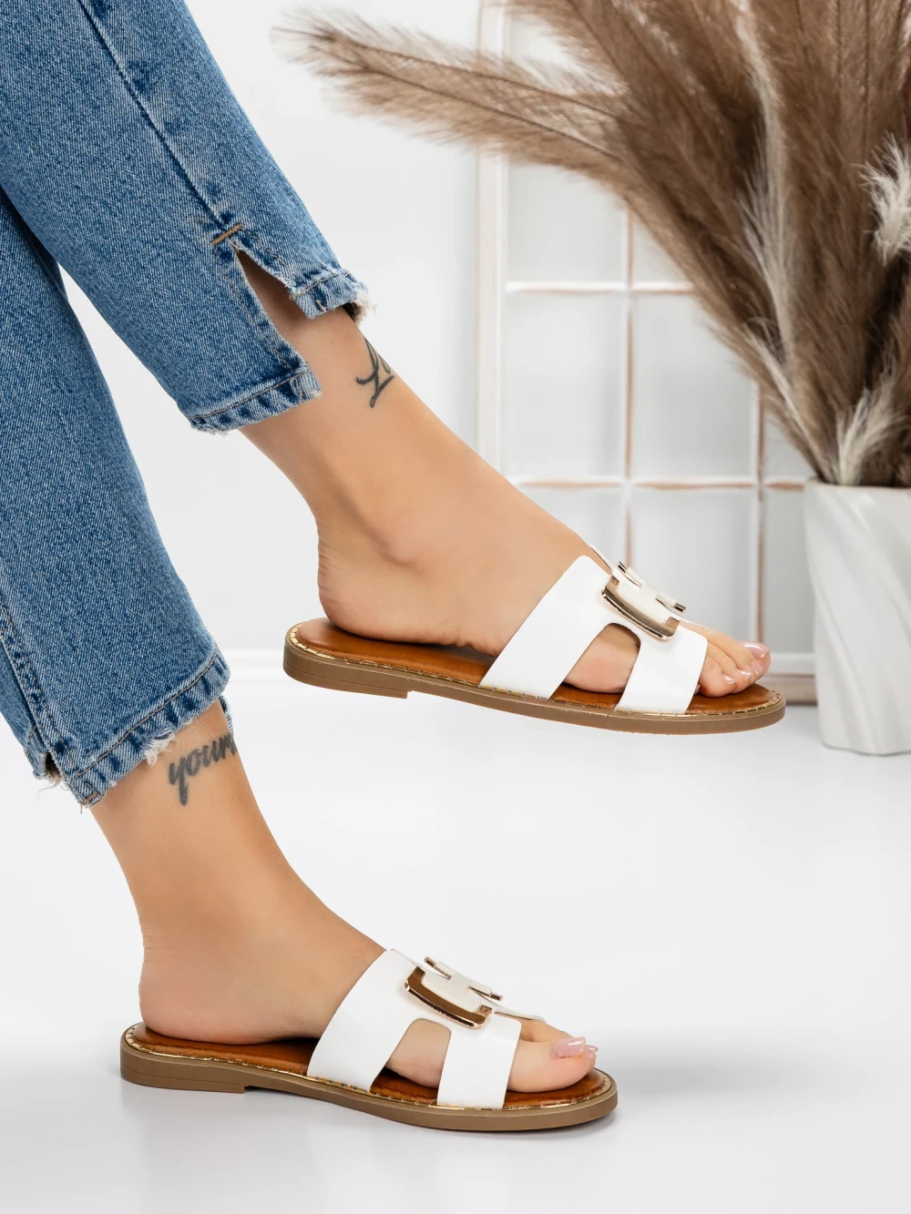 W MeiMall znajdziesz Kapcie damskie z niską podeszwą 5PT2 Biały | Mei. Żywy kolor Biały w połączeniu z wysokiej jakości materiałami i nowoczesnym designem zrobią na Tobie wrażenie! MeiMall to sklep internetowy oferujący szeroką gamę produktów dla kobiet, mężczyzn i dzieci. Znajdziesz tu buty, odzież, torby i akcesoria. Dostawa jest szybka, a okres zwrotu wynosi 14 dni.