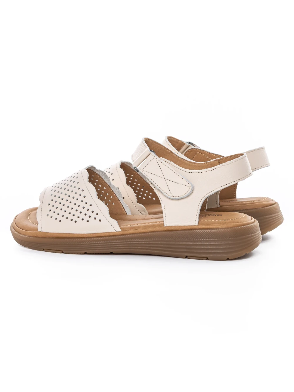 Sandały damskie ze skóry naturalnej 53302 Kremowy | Berliner