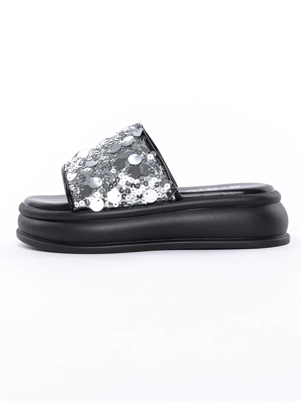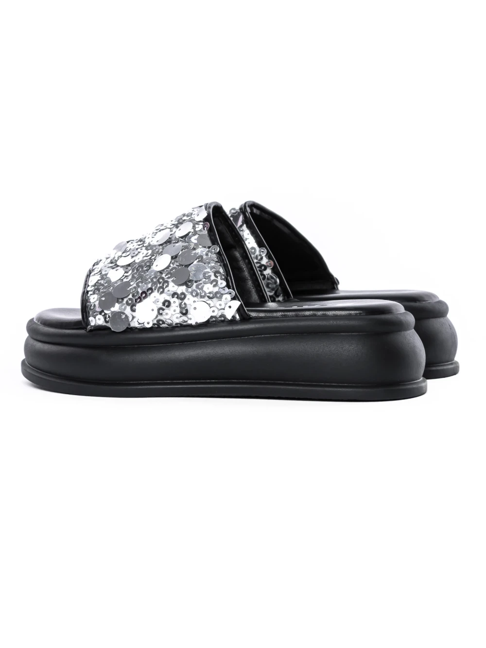 Kapcie damskie z niską podeszwą 999-1 Czarny-Srebrny | Fashion