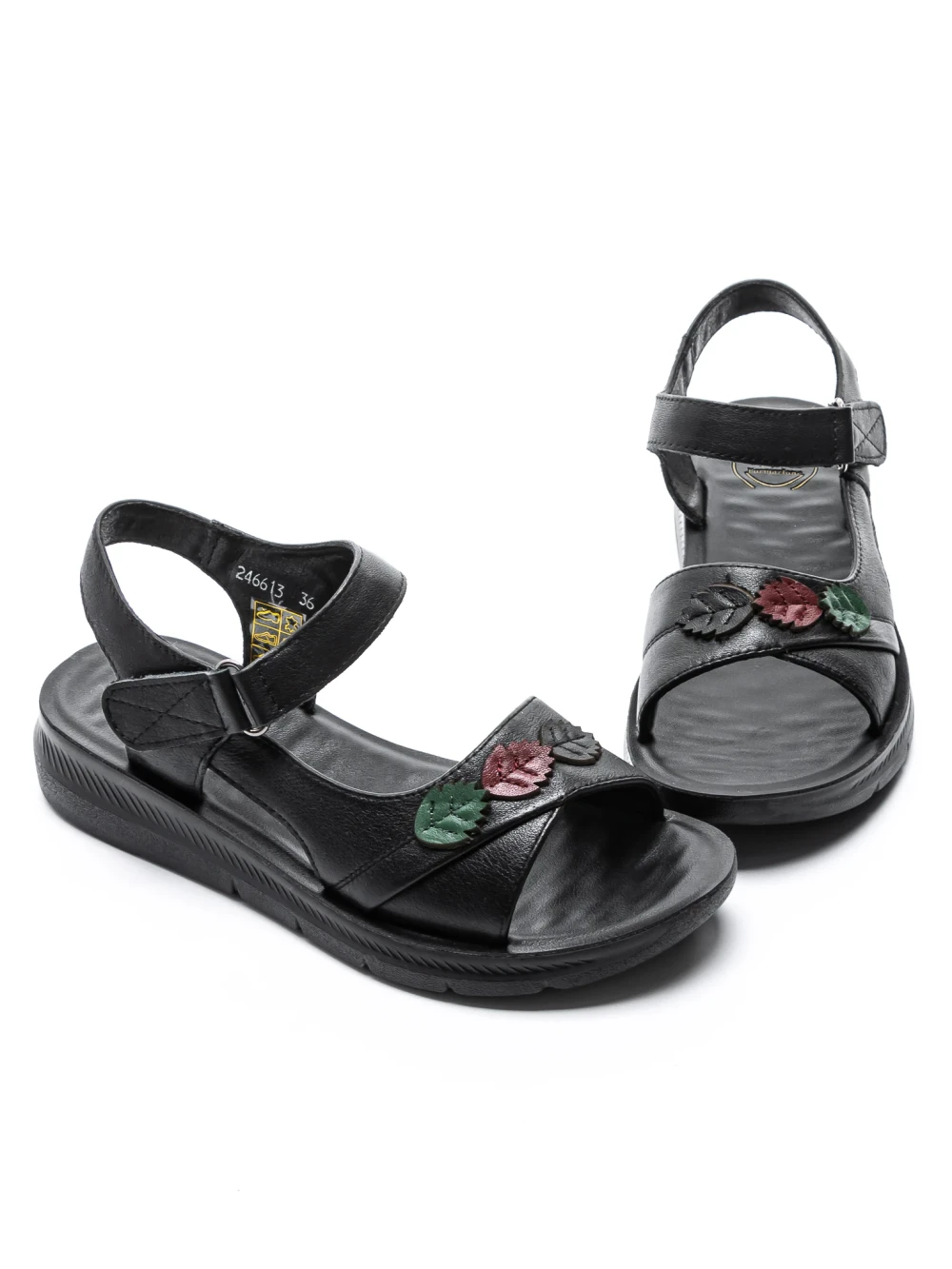 Sandały damskie ze skóry naturalnej 246613T Czarny | Formazione