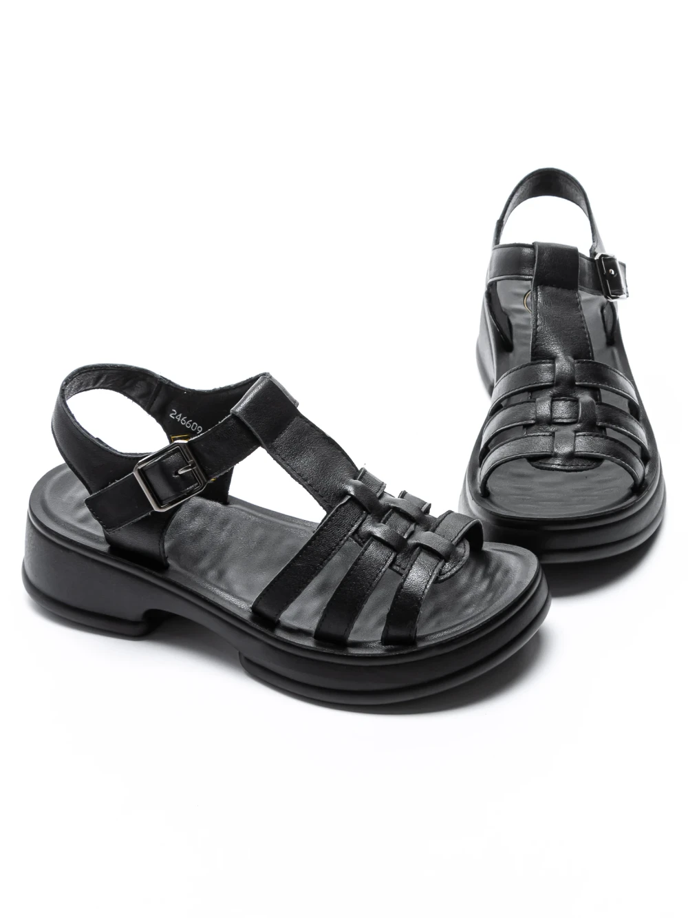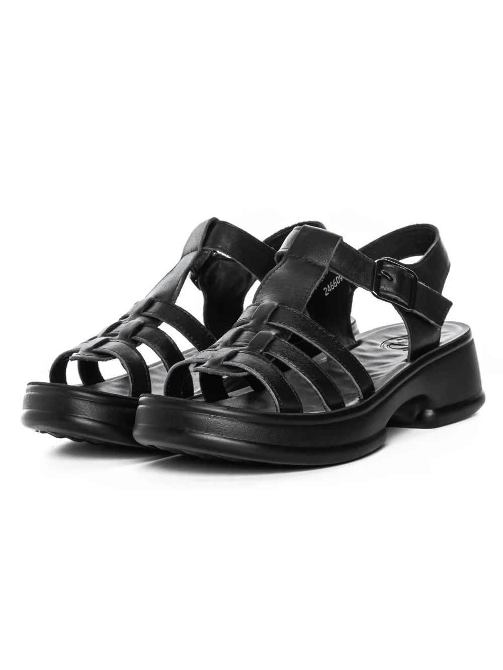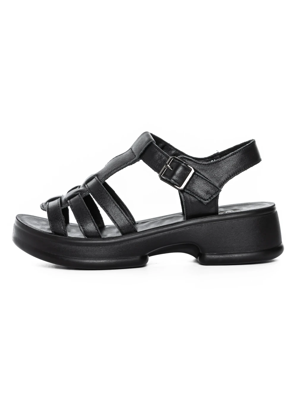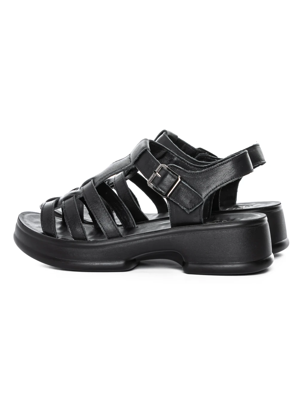 Sandały damskie ze skóry naturalnej 246609T Czarny | Formazione