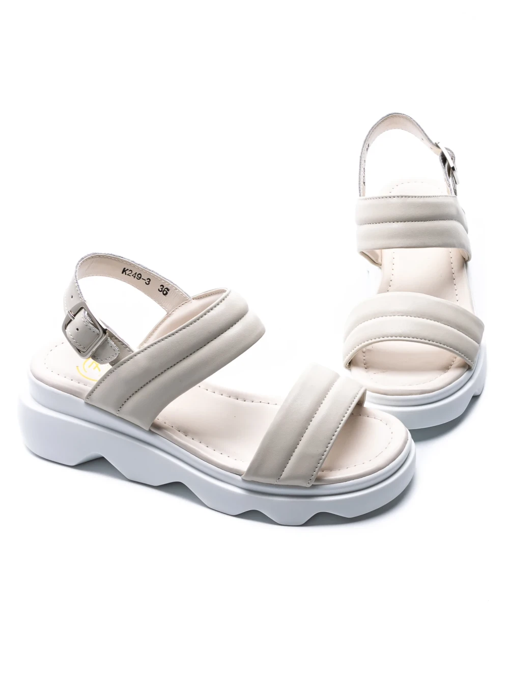 Sandały damskie ze skóry naturalnej K249-3 Kremowy | Formazione