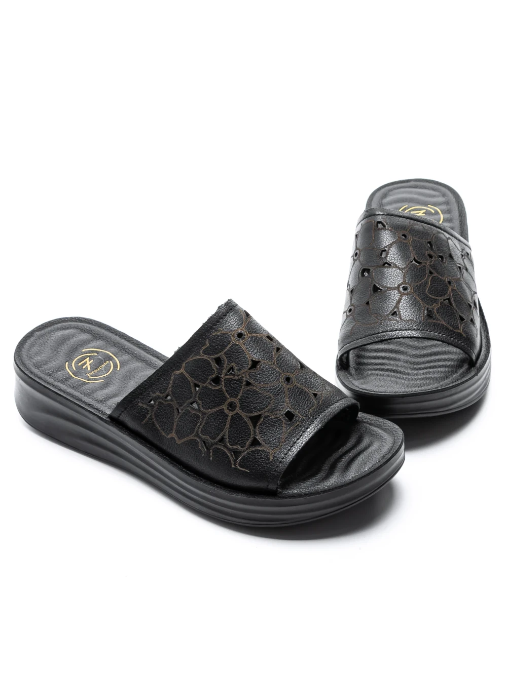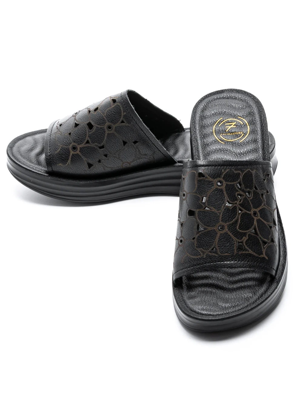 Damskie kapcie ze skóry naturalnej 2607905 Czarny | Formazione