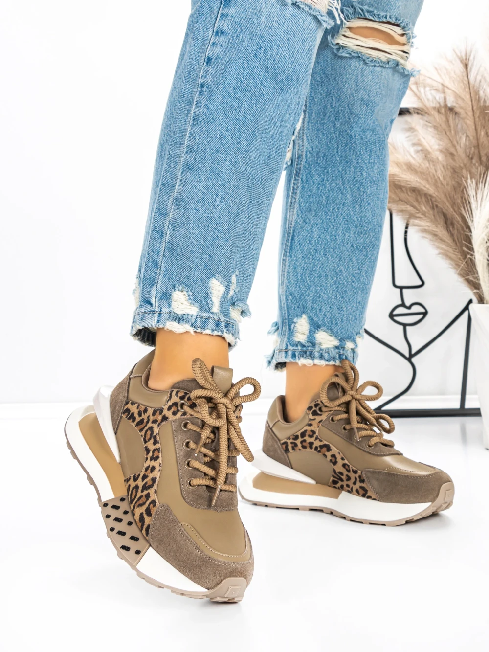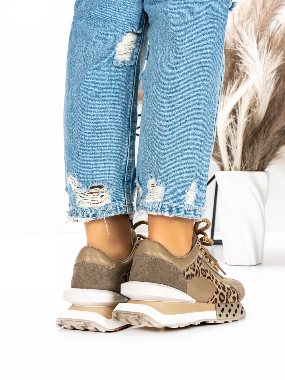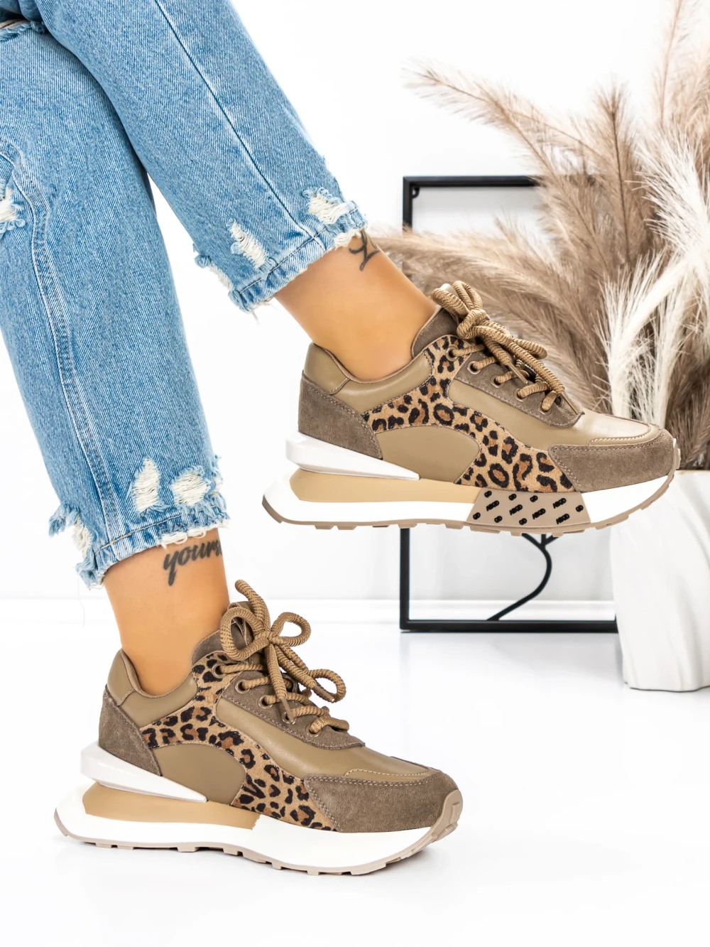 Damskie buty sportowe wykonane ze skóry naturalnej 5SZ11 Khaki | Pantoful