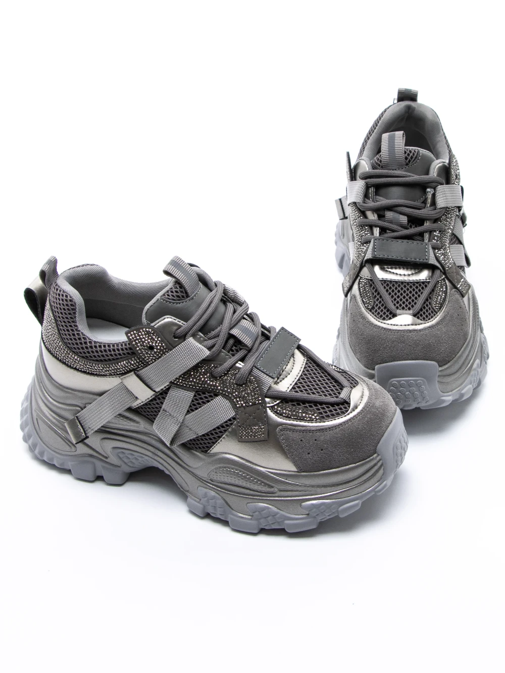 Trampki damskie 5WL96 Czarny-Gunmetal | Mei