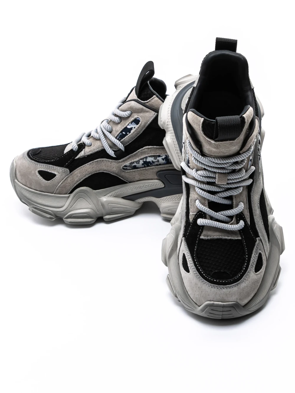Damskie buty sportowe wykonane ze skóry naturalnej Y5797-1 Czarny-Szary | Advancer