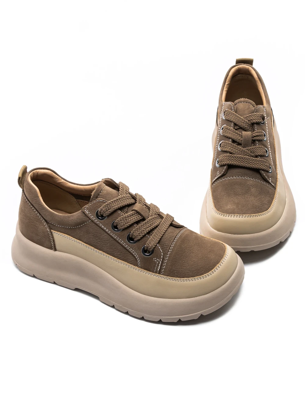Damskie buty sportowe wykonane ze skóry naturalnej 70108-2 Khaki | Advancer