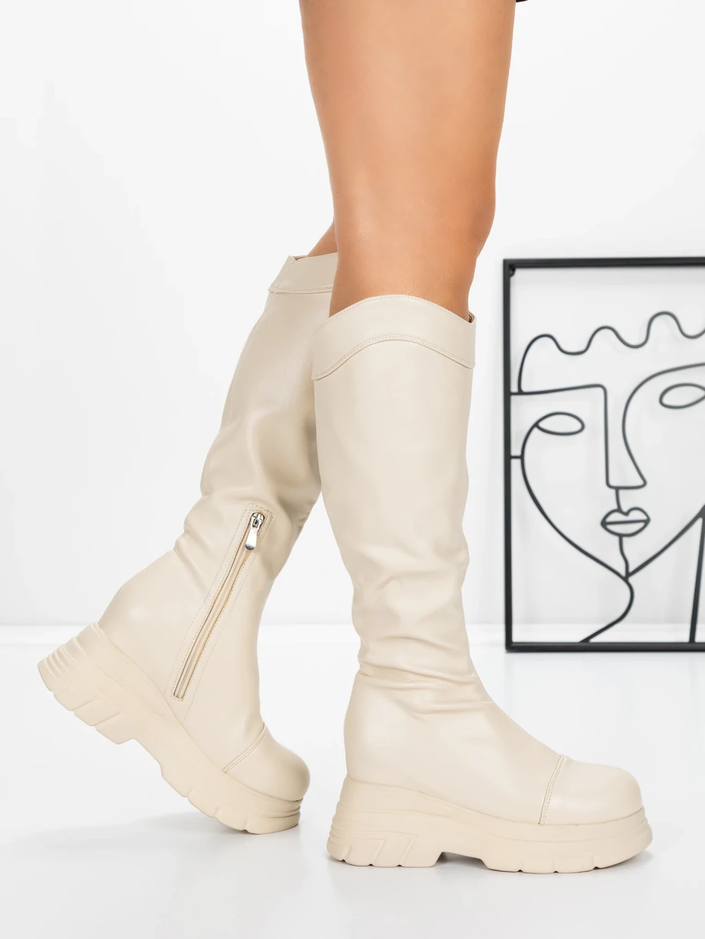 Kozaki na platformie 58WL13 Beżowy | Mei