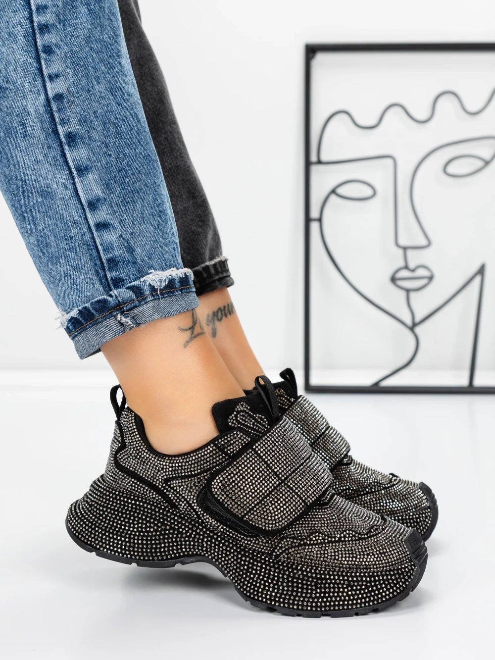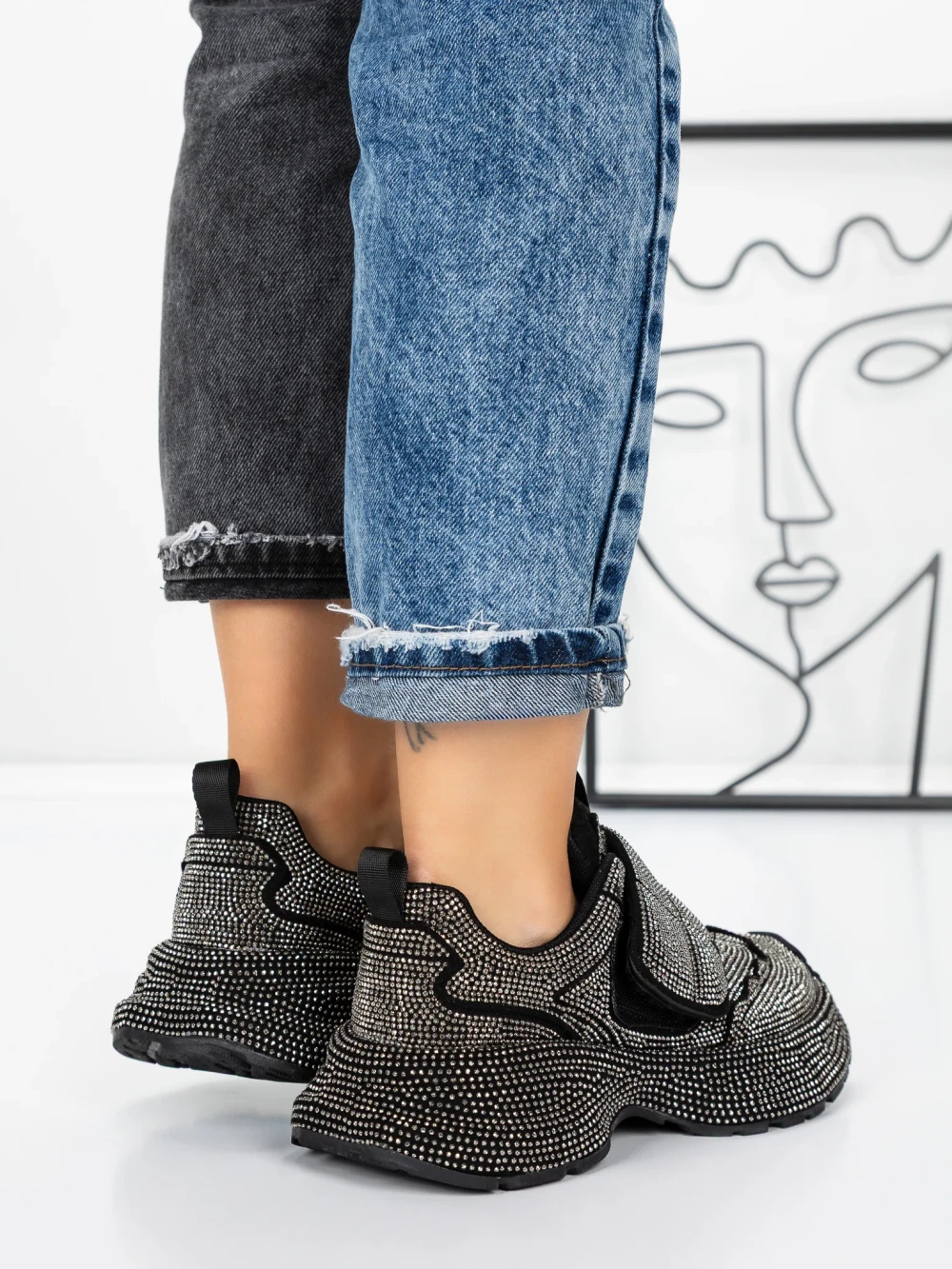 Trampki damskie 5WL96 Czarny-Gunmetal | Mei