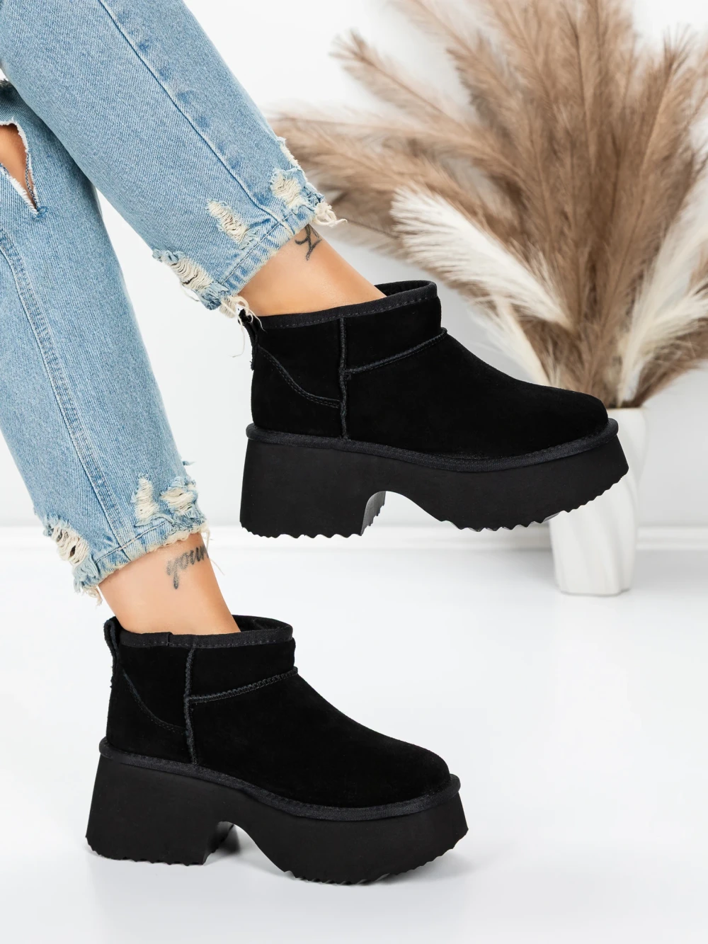 Ghete Dama din piele naturala 5W70 BLACK | PANTOFUL