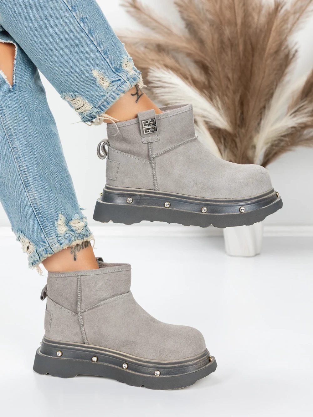 Ghete Dama din piele naturala 58W28 GREY | PANTOFUL