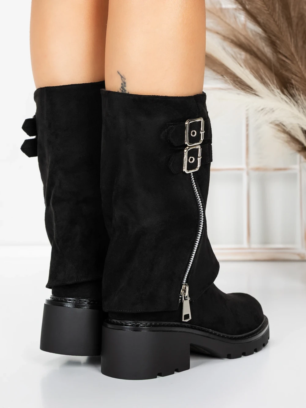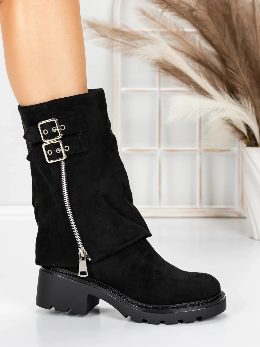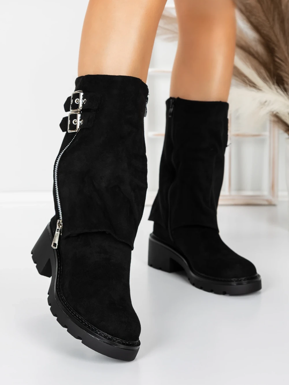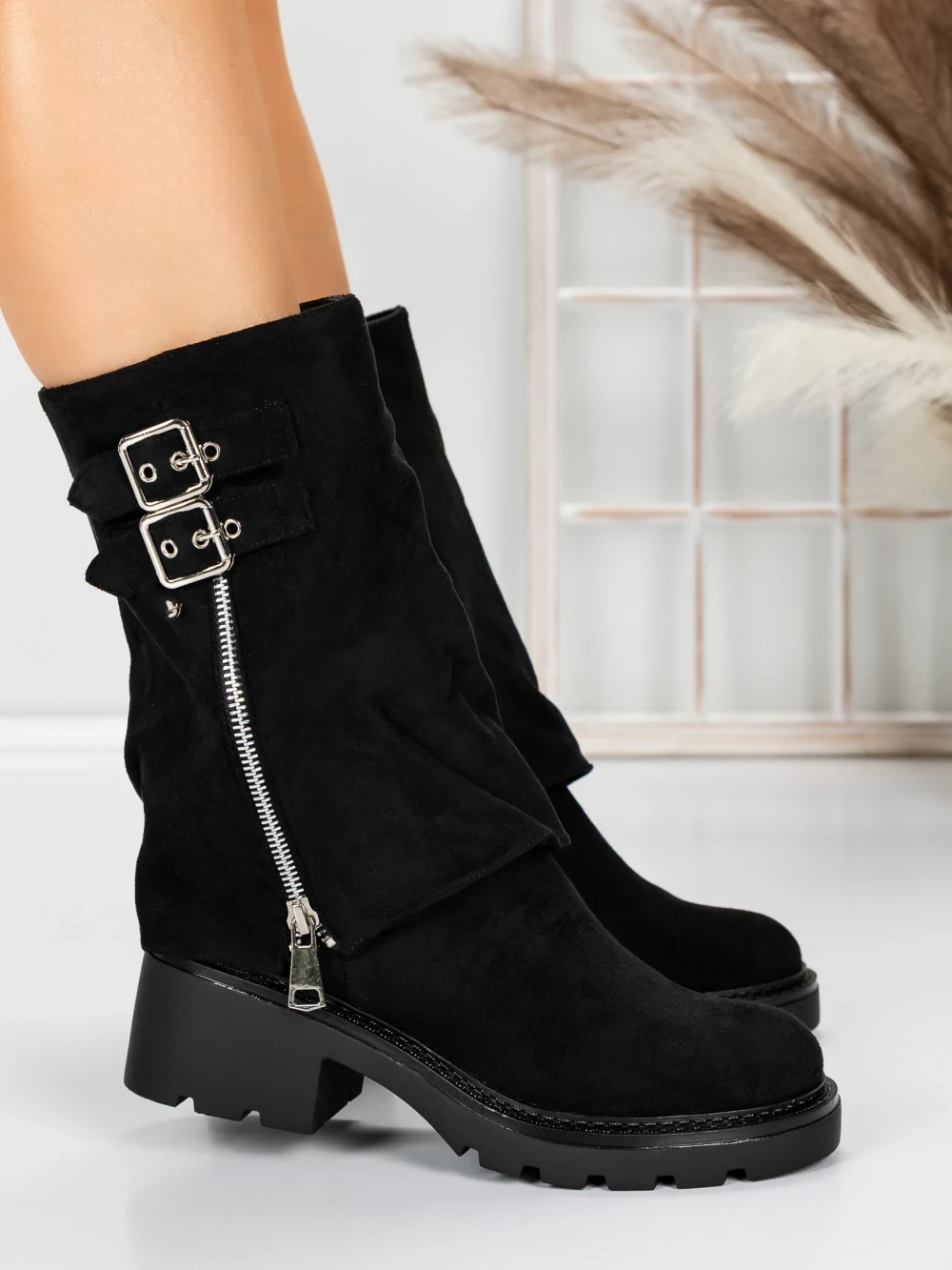 Krótkie botki z grubym obcasem 3JF11 Czarny | Mei