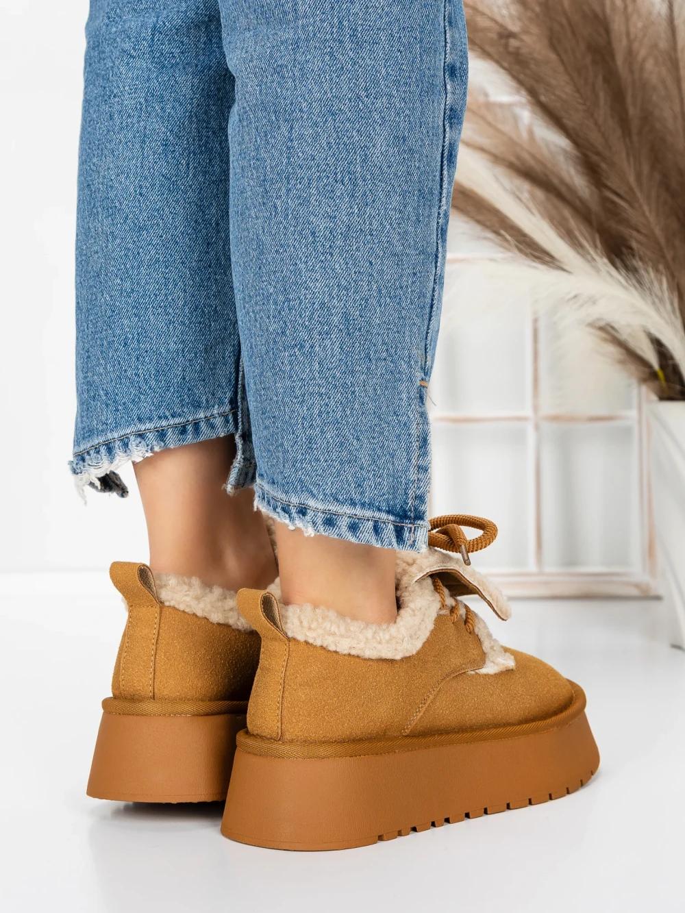 Damskie skórzane botki UG 5WL101 Żółty | Mei