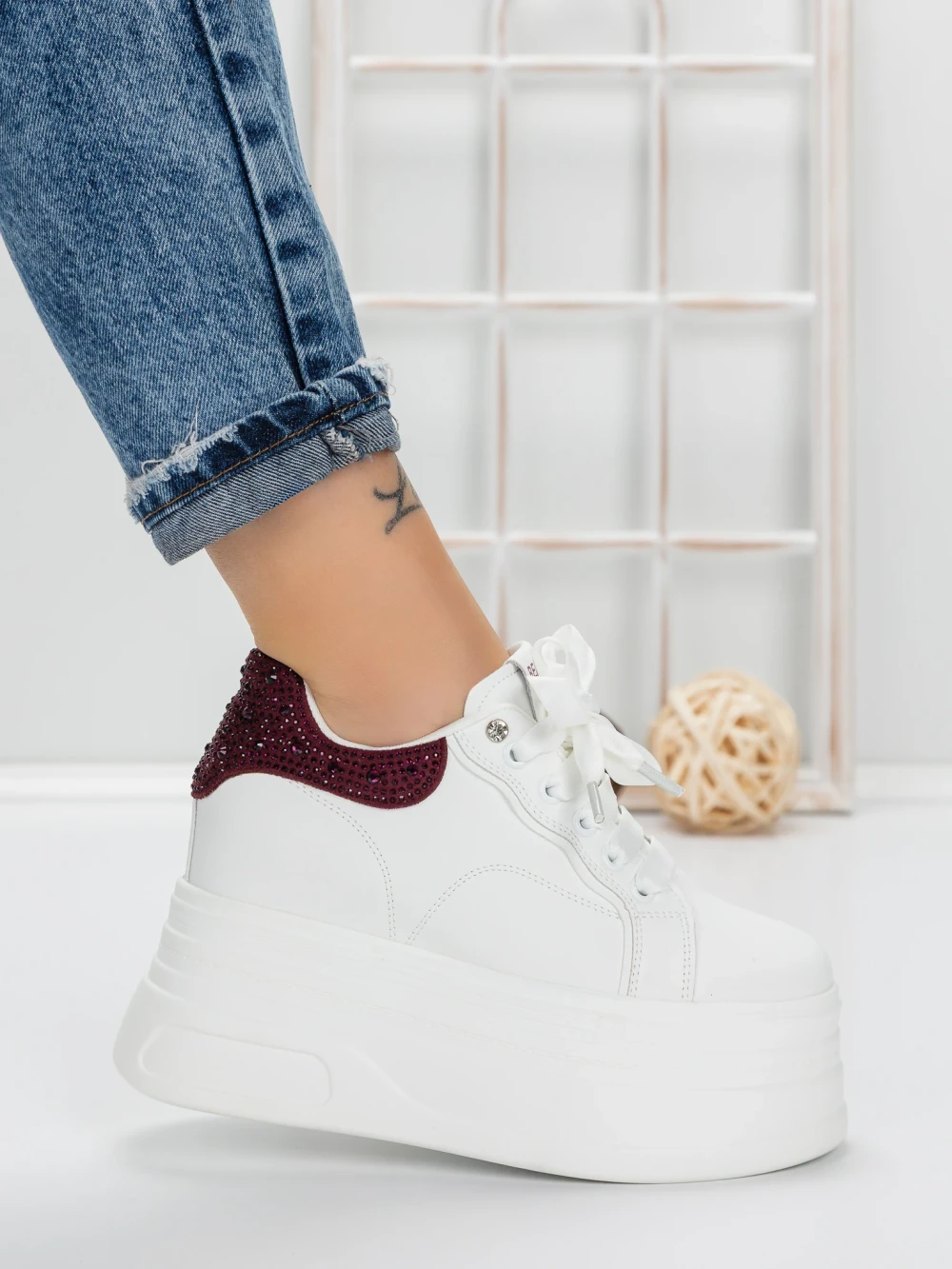 Buty sportowe na platformie 3592-7 Biały-Wiśniowy | Mei