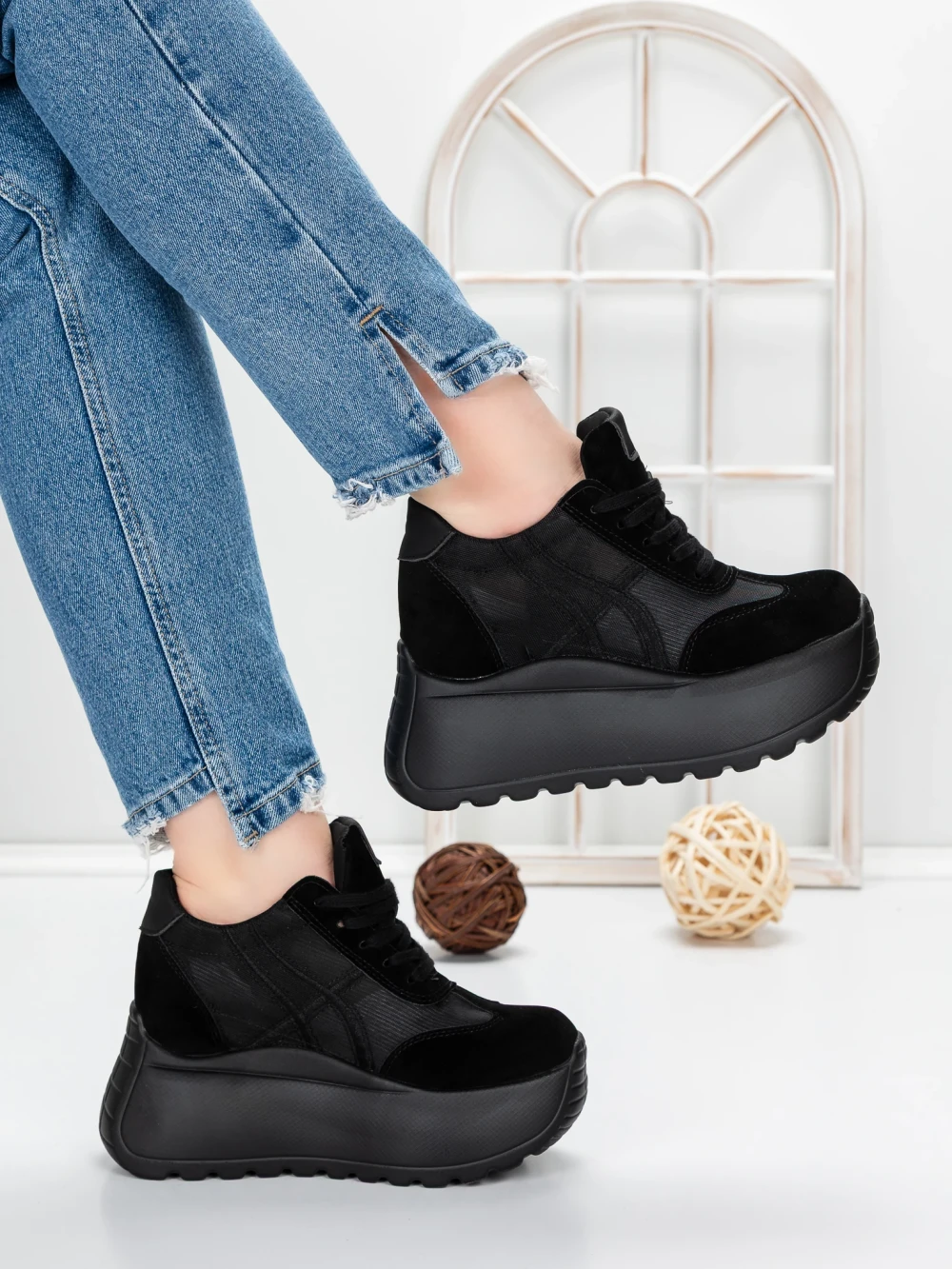 Buty sportowe na platformie 5WL111 Czarny | Mei
