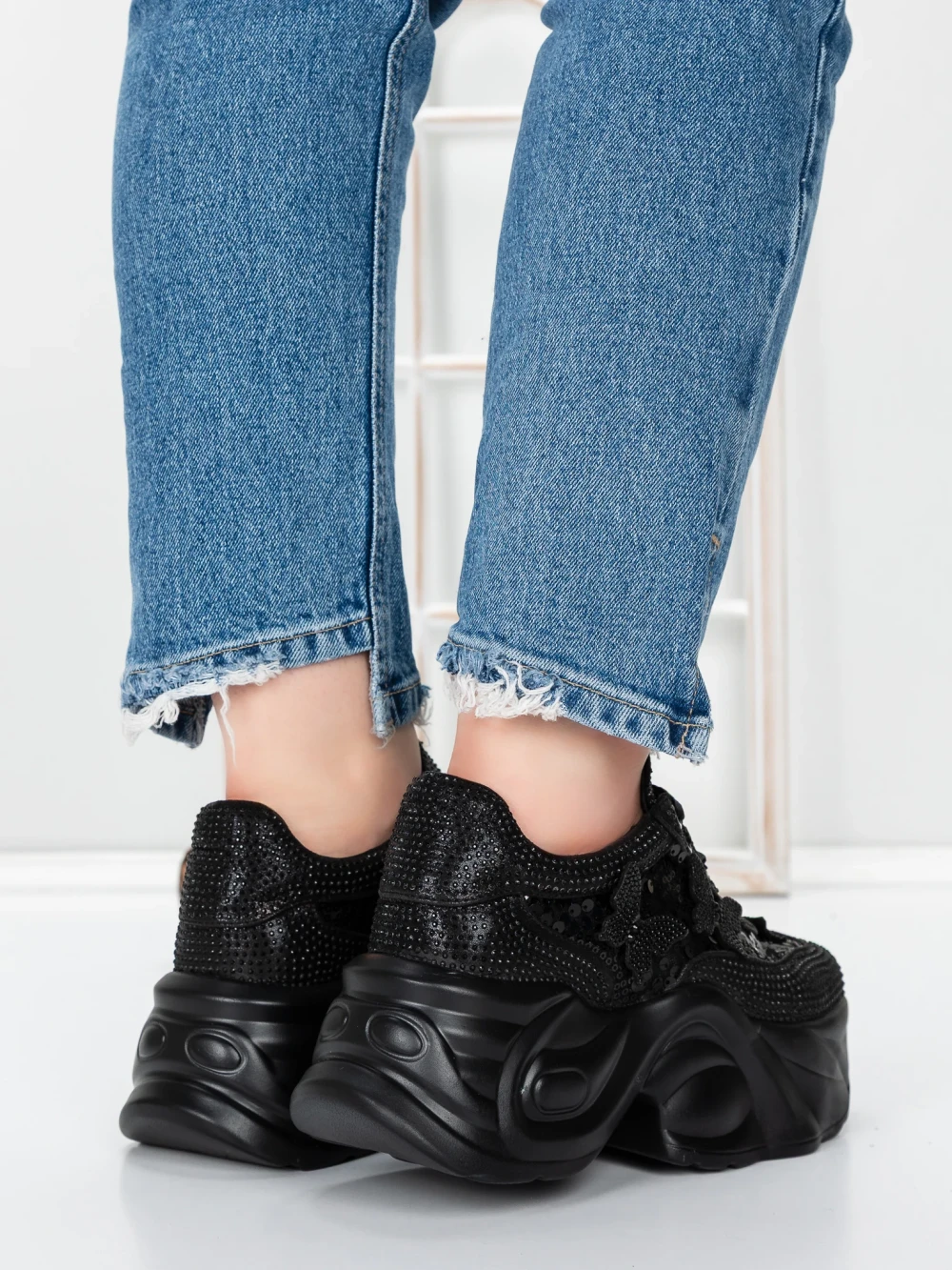Buty sportowe na platformie 5WL112 Czarny | Mei