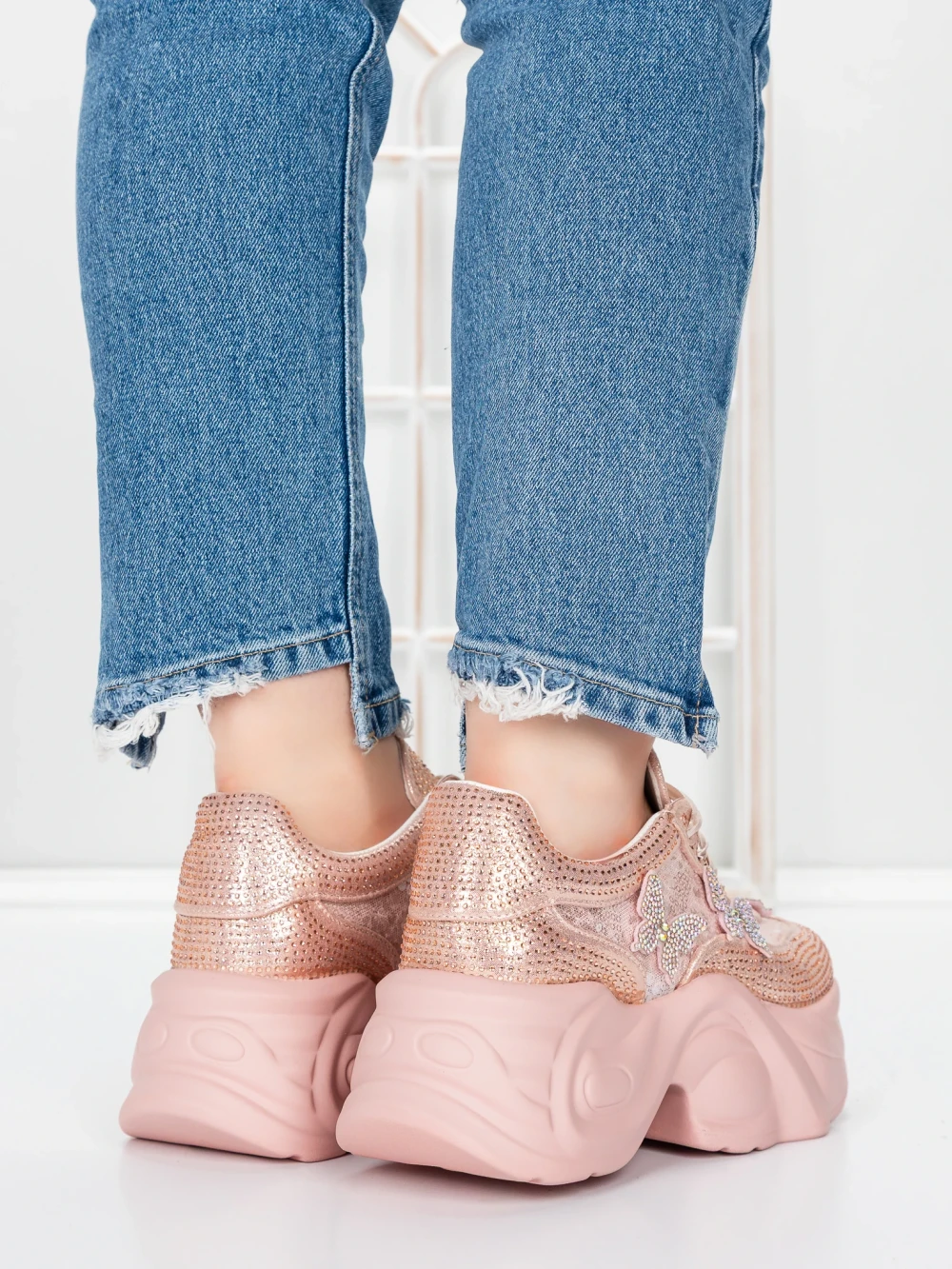 Buty sportowe na platformie 5WL112 Różowy | Mei