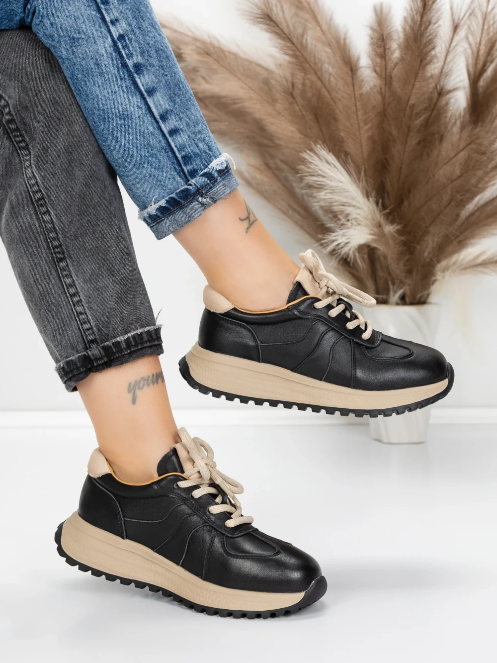 Pantofi Sport Dama din piele naturala 88253 BLACK | ADVANCER