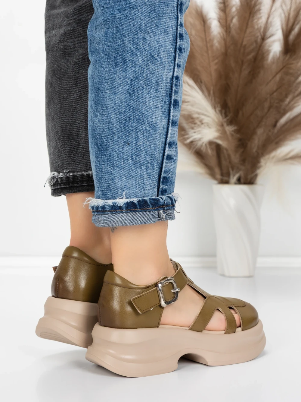 Sandały damskie ze skóry naturalnej 10668 Khaki | Advancer