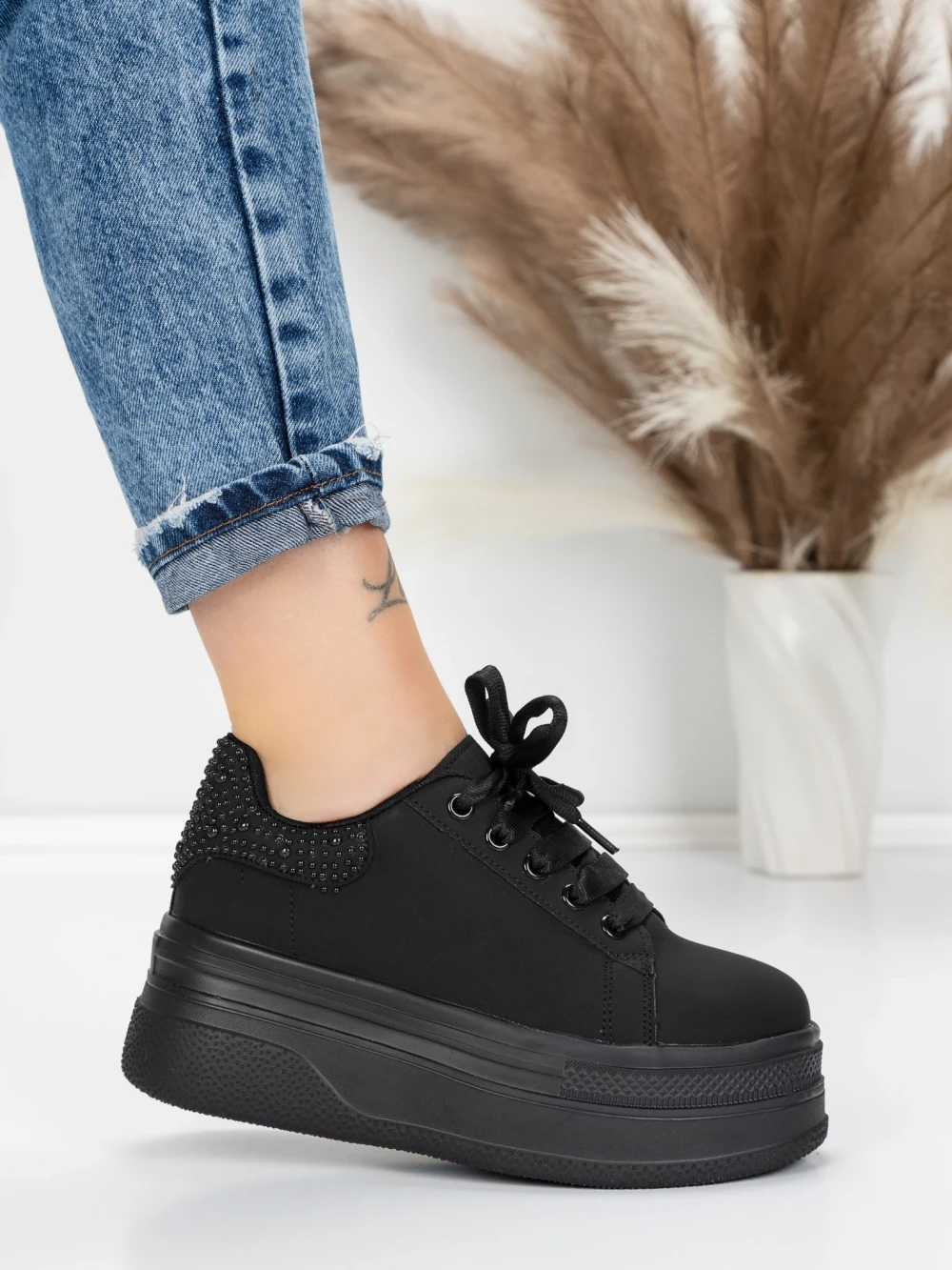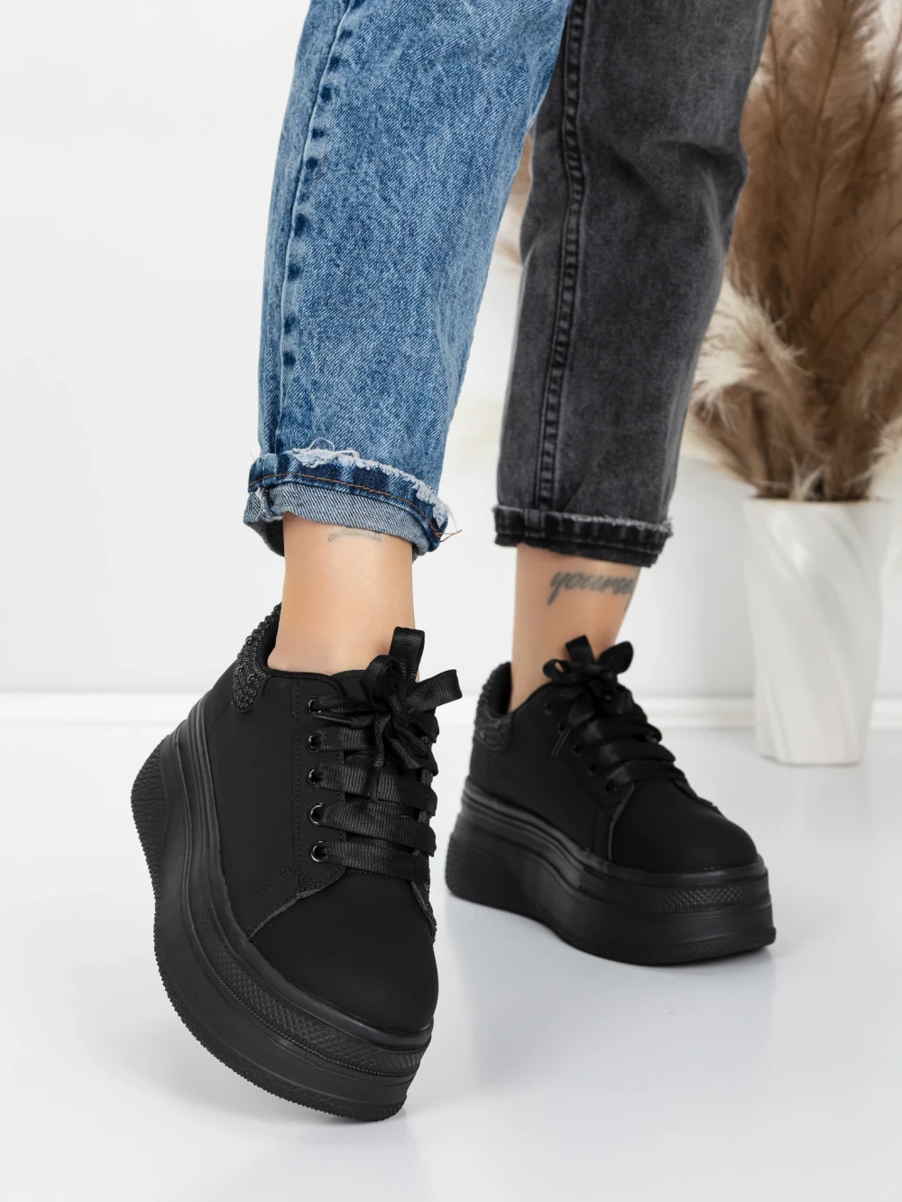 Buty sportowe na platformie 3AL12 Czarny | Mei