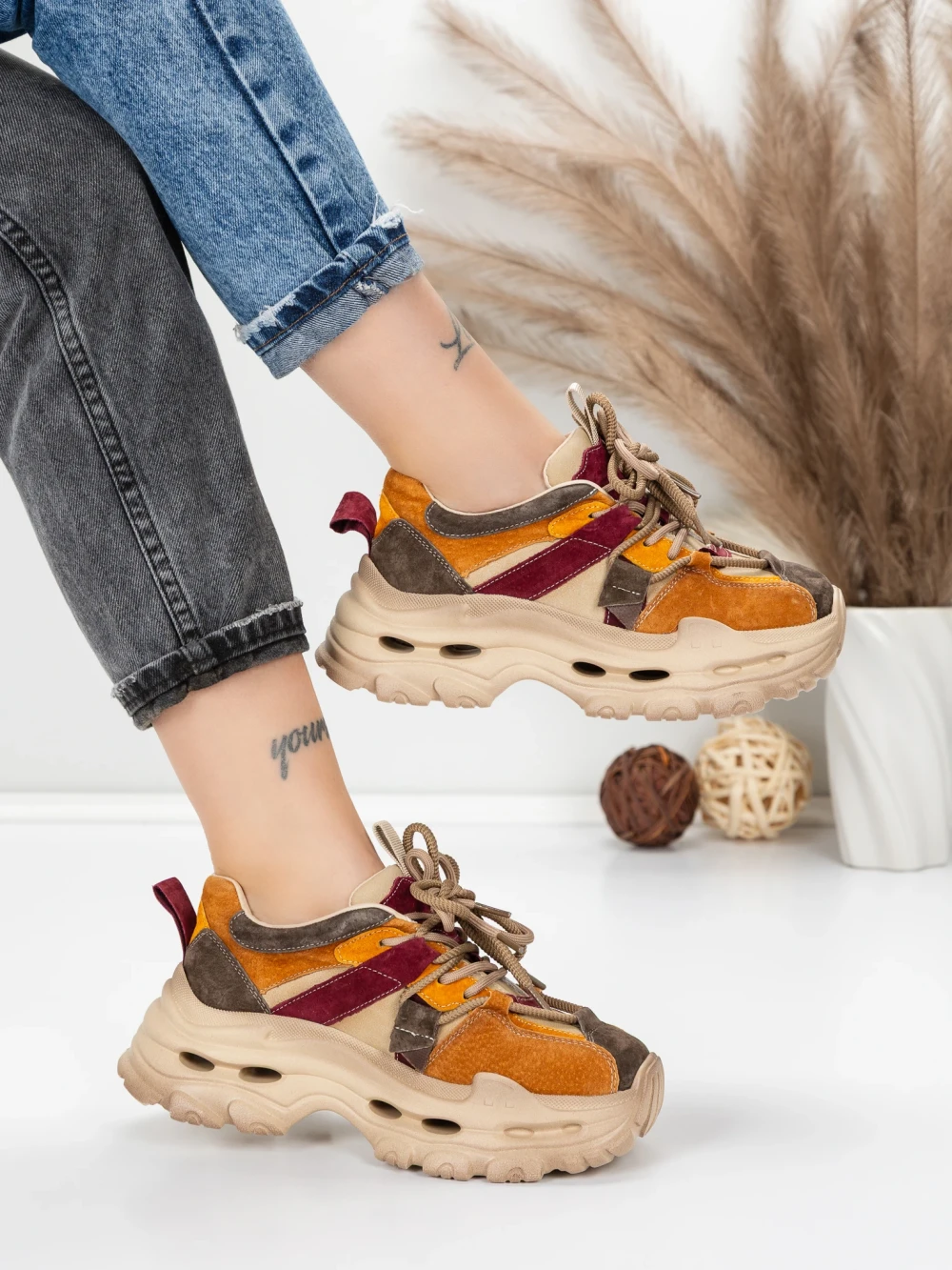 Pantofi Sport Dama din piele naturala HY2986 APRICOT-WINE | FRANCO GERARDO