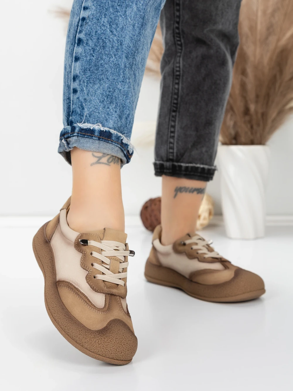 Damskie buty sportowe wykonane ze skóry naturalnej 7110 Brąz-Kremowy | Franco Gerardo