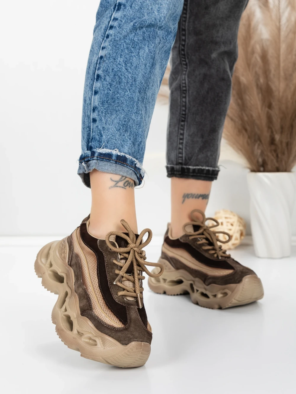 Damskie buty sportowe wykonane ze skóry naturalnej HY6376 Brąz | Franco Gerardo
