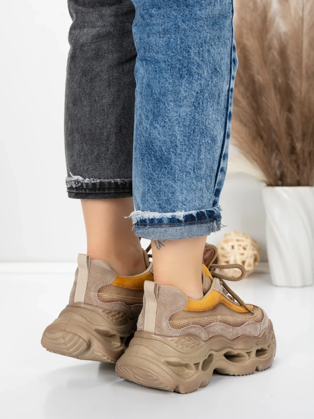 Damskie buty sportowe wykonane ze skóry naturalnej HY6376 Żółty | Franco Gerardo