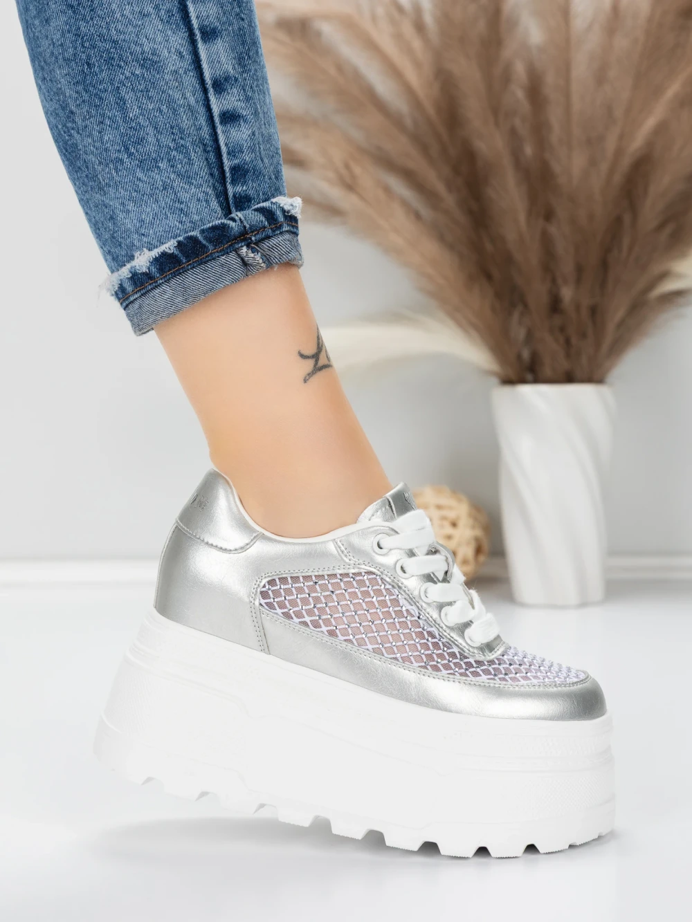 W MeiMall znajdziesz Buty sportowe na platformie 6208-35 Srebrny | Mei. Żywy kolor Srebrny w połączeniu z wysokiej jakości materiałami i nowoczesnym designem zrobią na Tobie wrażenie! MeiMall to sklep internetowy oferujący szeroką gamę produktów dla kobiet, mężczyzn i dzieci. Znajdziesz tu buty, odzież, torby i akcesoria. Dostawa jest szybka, a okres zwrotu wynosi 14 dni.