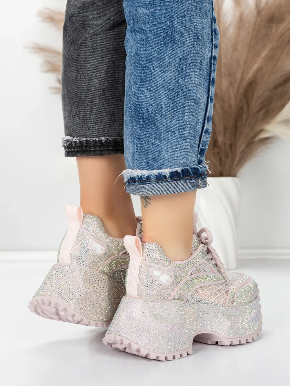 Buty sportowe na platformie 6968-1 Różowy | Mei