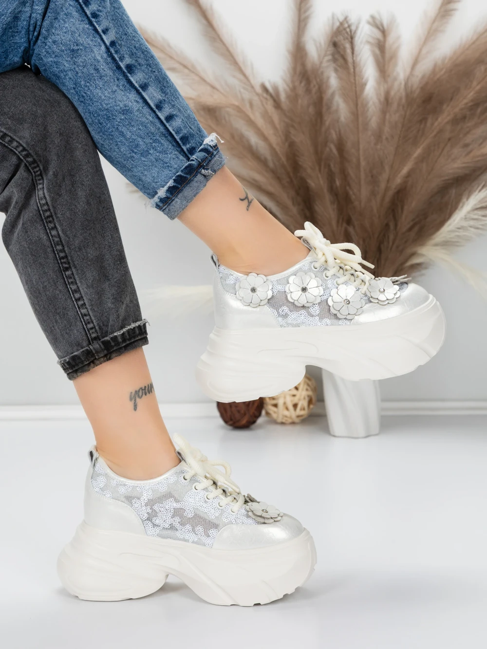 Buty sportowe na platformie 8307-2 Biały | Mei