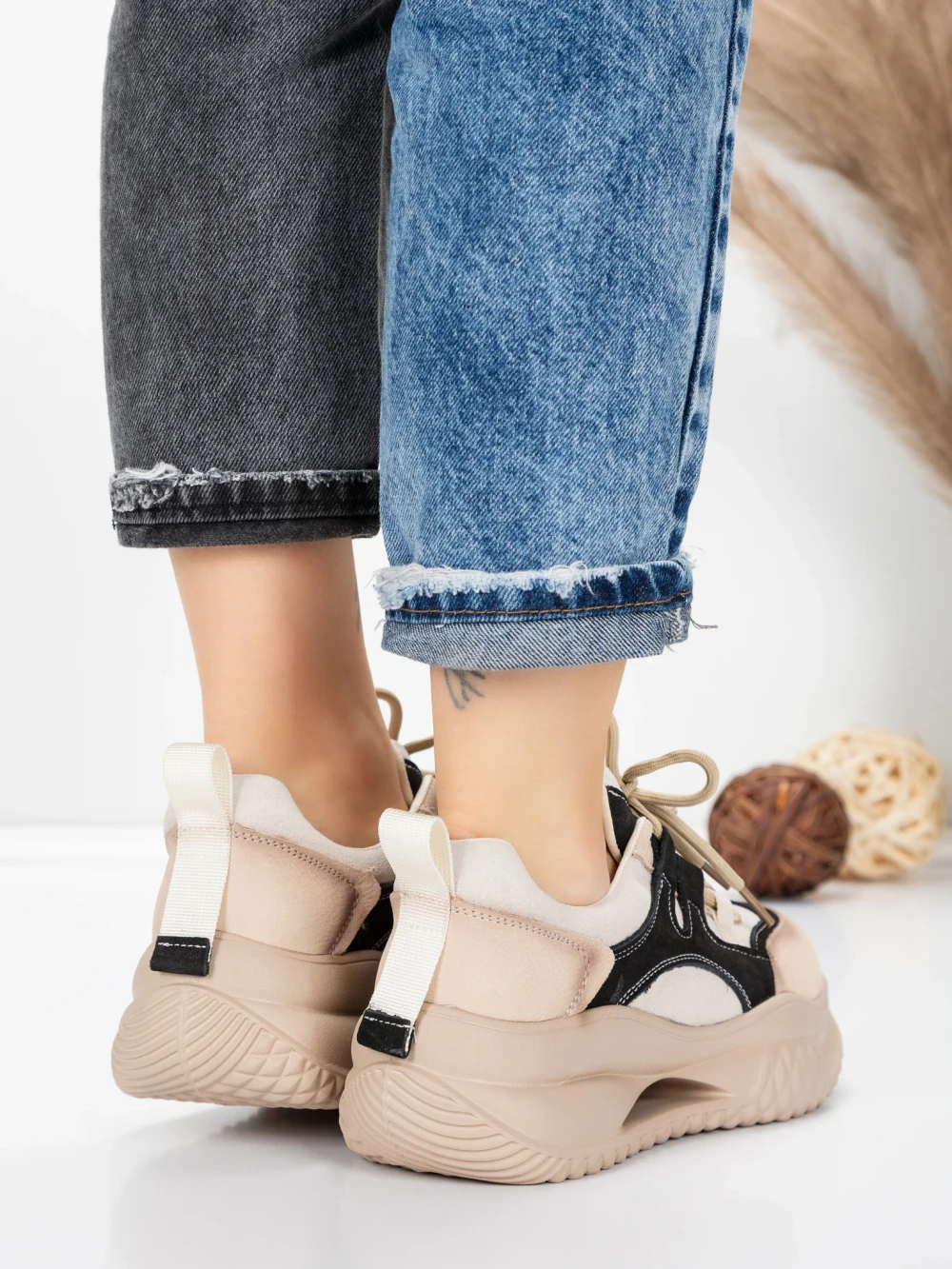 Damskie buty sportowe wykonane ze skóry naturalnej 2577 Kremowy-Czarny | Franco Gerardo