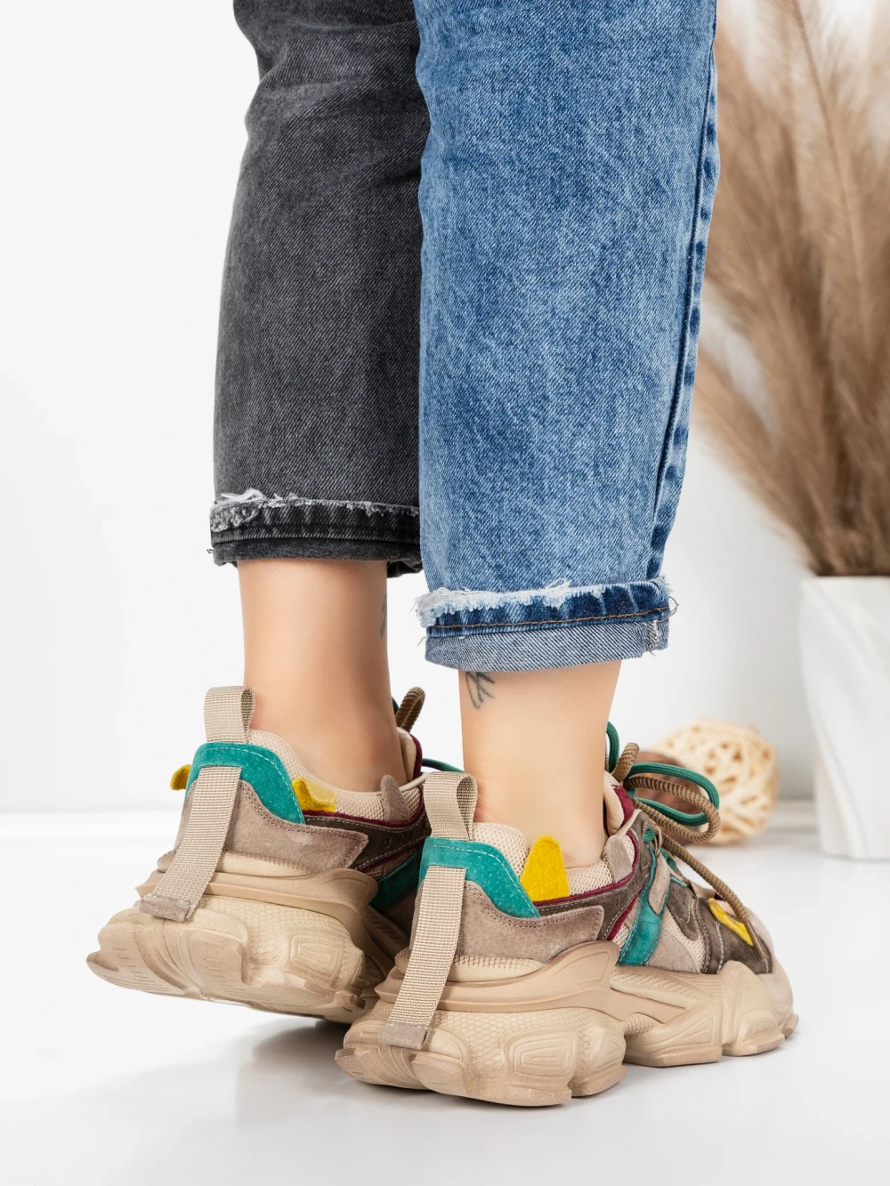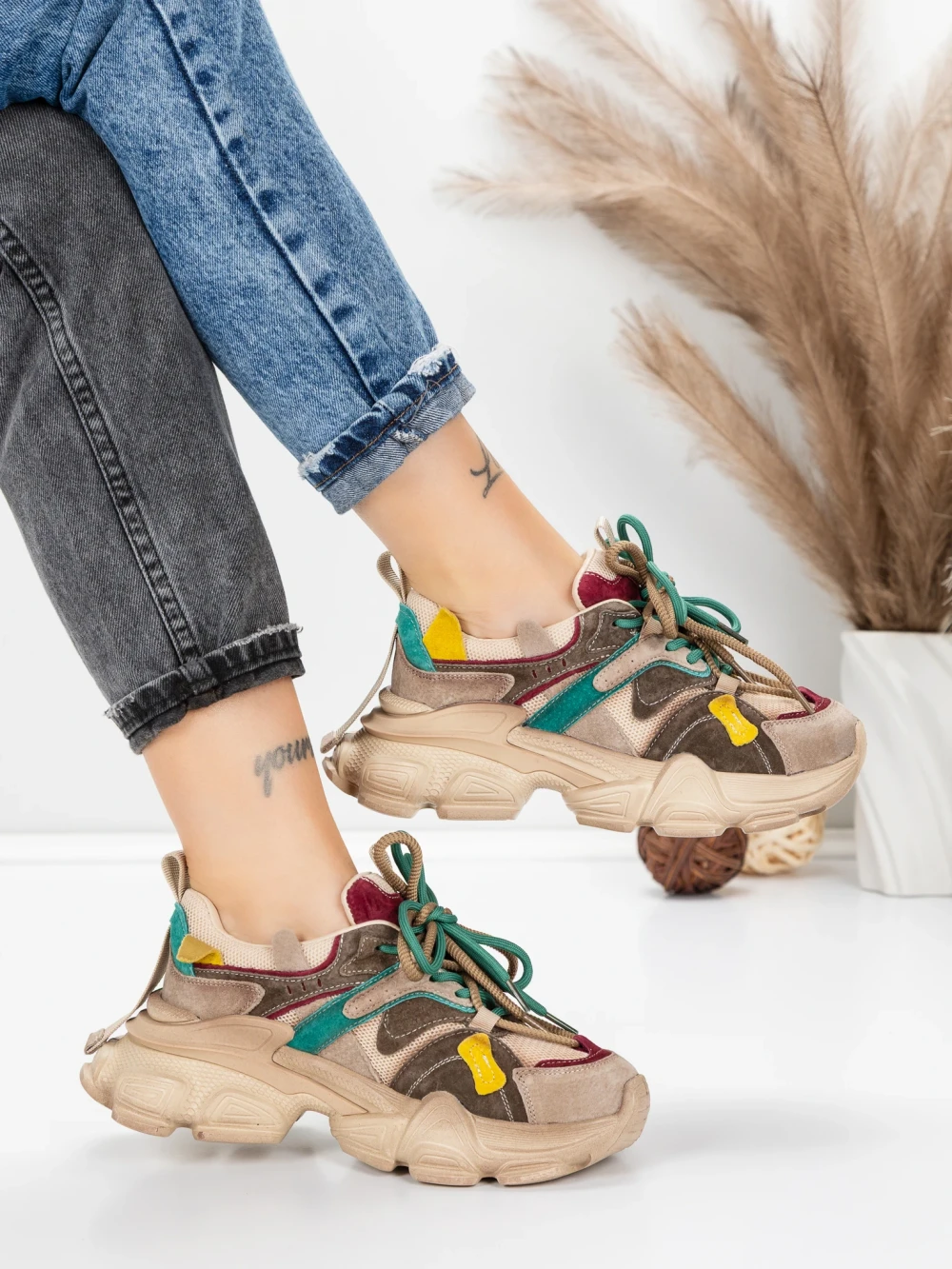 Damskie buty sportowe wykonane ze skóry naturalnej 70099 Kremowy | Franco Gerardo