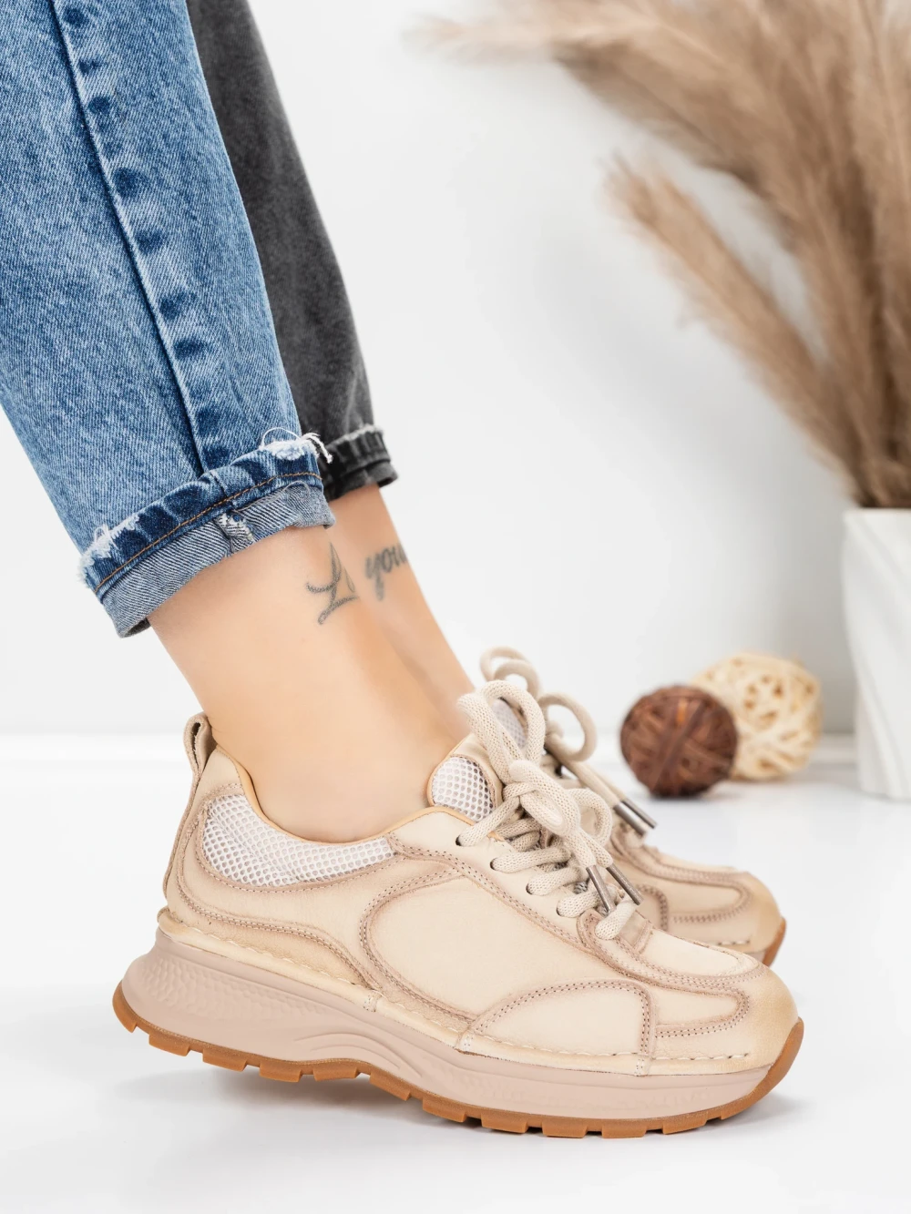 Damskie buty sportowe wykonane ze skóry naturalnej 10018 Kremowy | Franco Gerardo