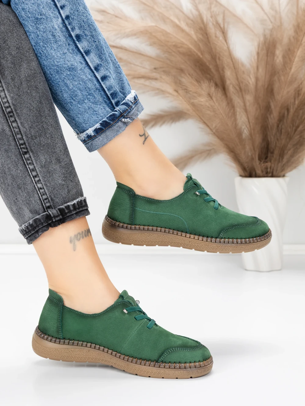 Obuwie damskie na co dzień wykonane ze skóry naturalnej 8736 Zielony | Formazione