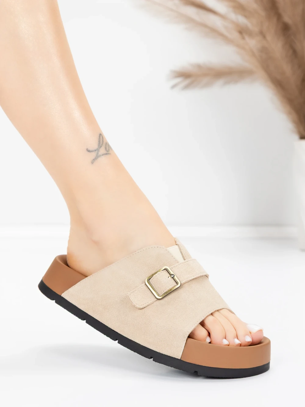 Kapcie damskie z niską podeszwą 3GH22 Kremowy | Mei