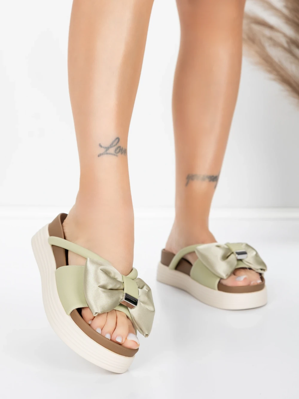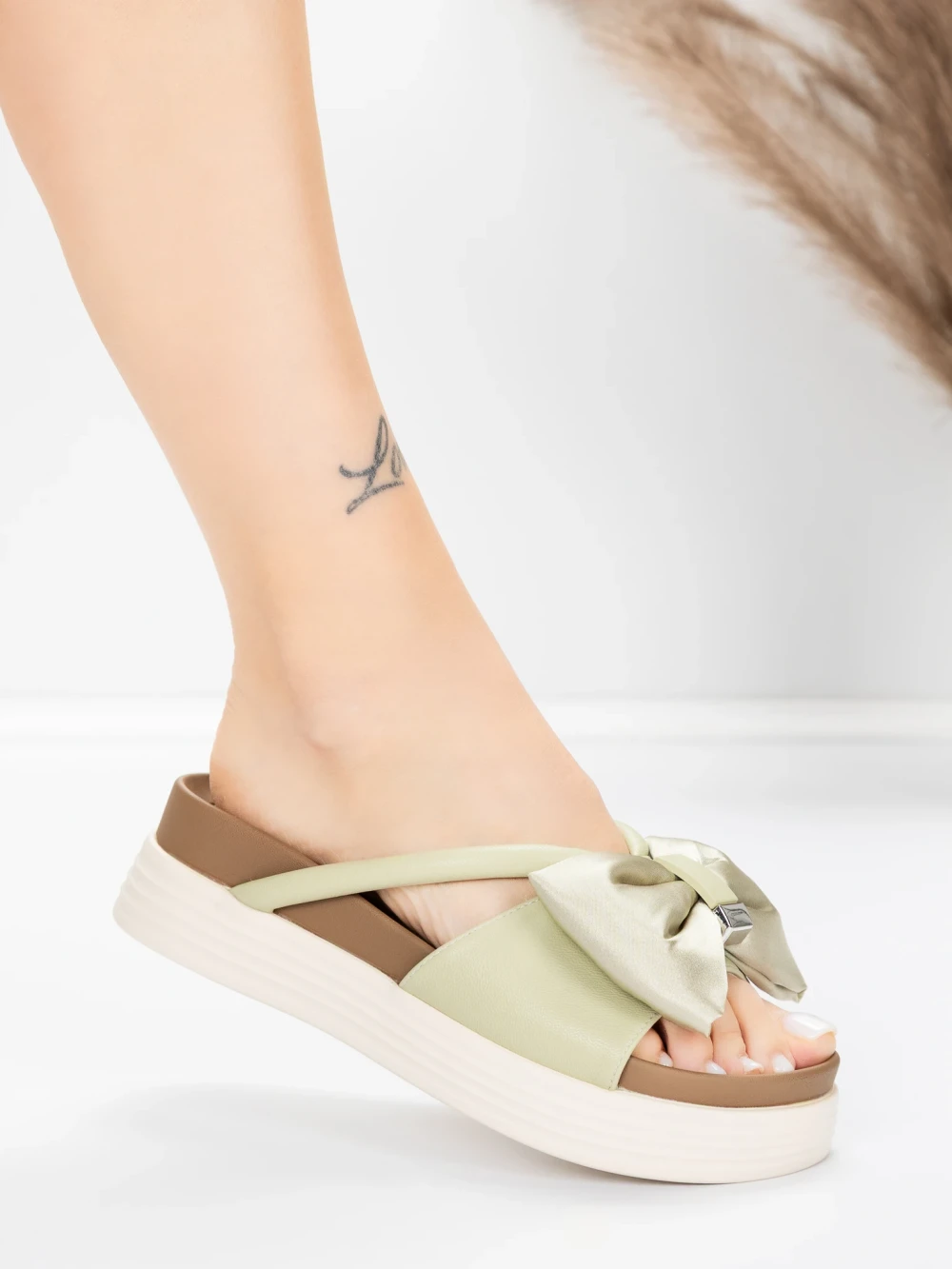Damskie kapcie ze skóry naturalnej TP637-1 Zielony | Formazione