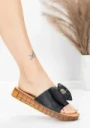 Damskie kapcie ze skóry naturalnej 28118 Czarny | Advancer