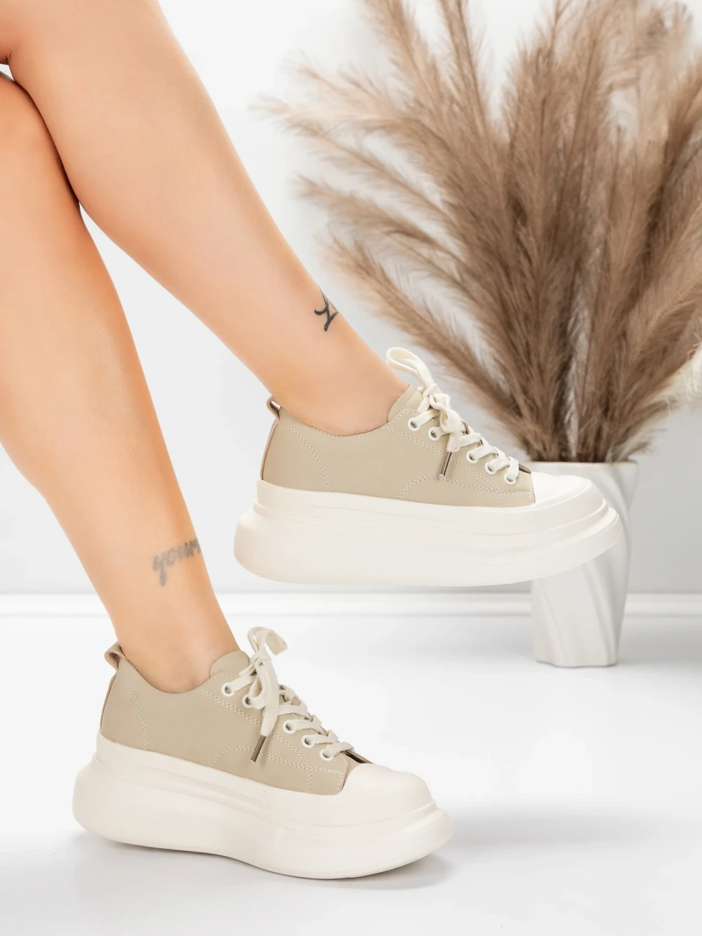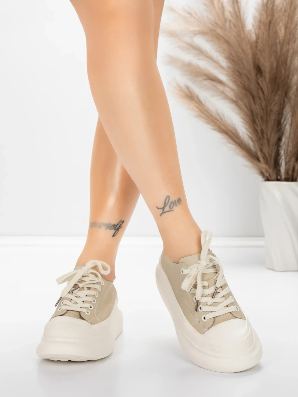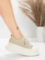 Obuwie damskie na co dzień wykonane ze skóry naturalnej 8736 Khaki | Formazione